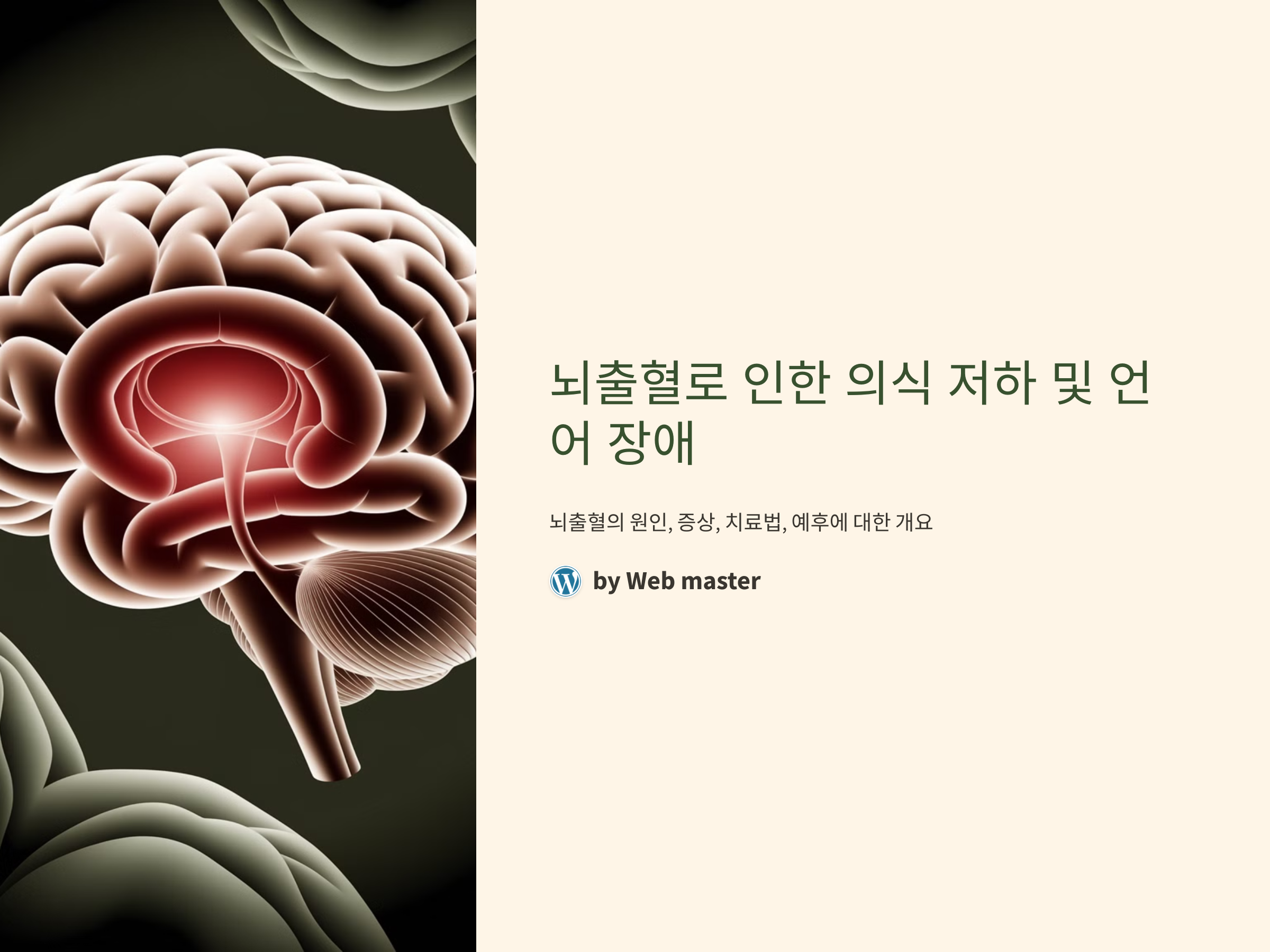 언어 장애의 정도는 출혈이 발생한 뇌의 부위와 범위에 따라 달라지며, 치료의 시기와 방법에 따라 회복 정도도 다를 수 있습니다.
