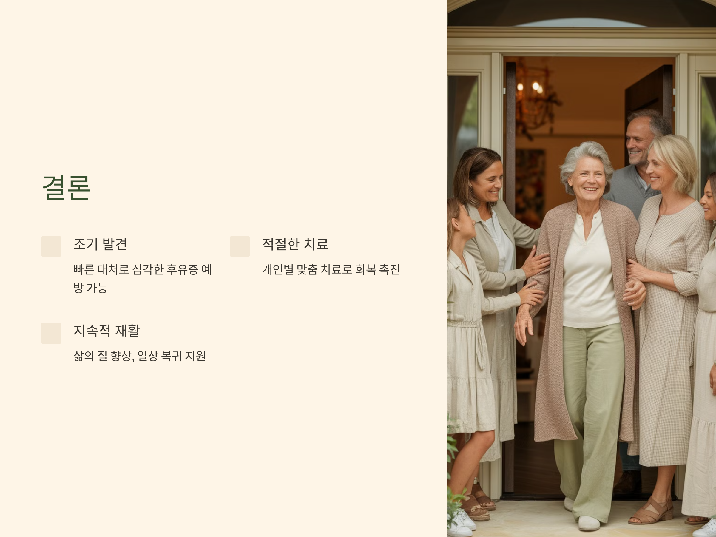 빠른 치료와 적극적인 재활 치료는 회복 가능성을 높이며, 의식 회복과 언어 기능 회복을 돕는 중요한 요소입니다.