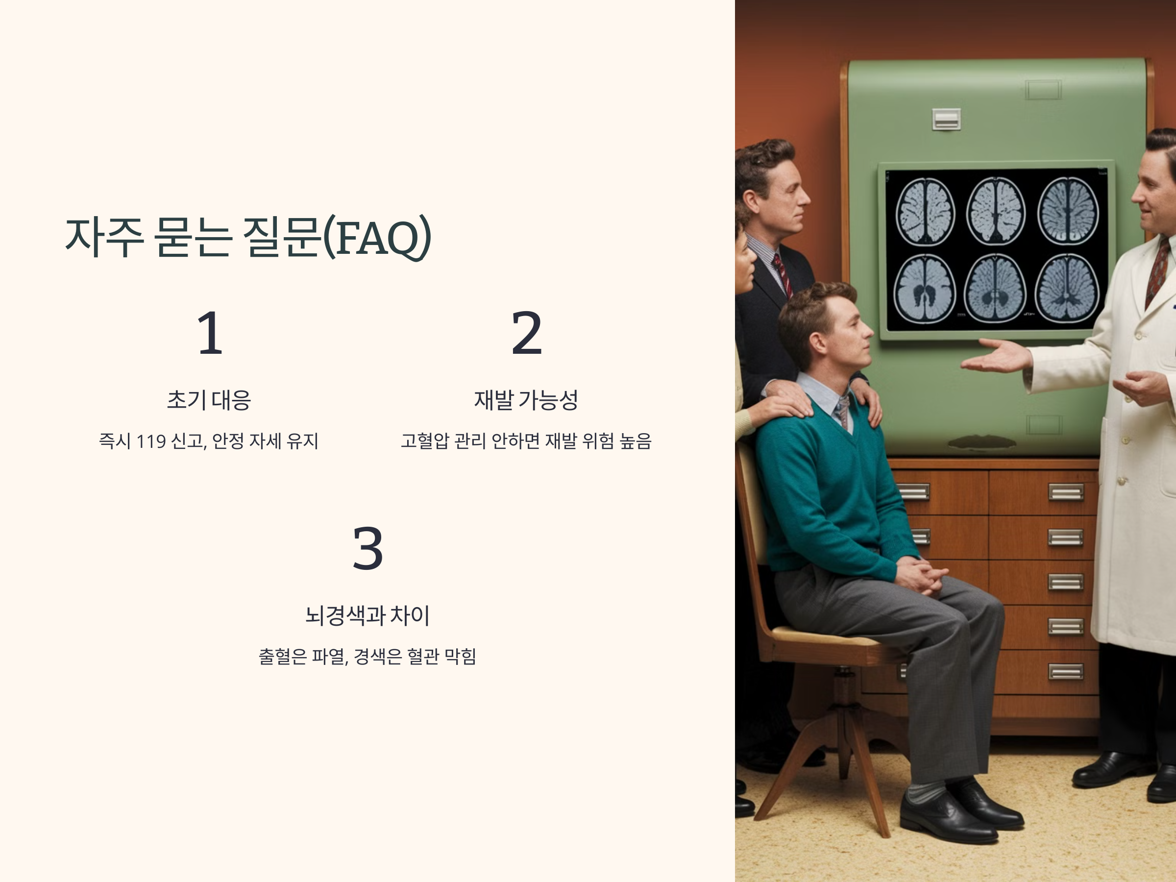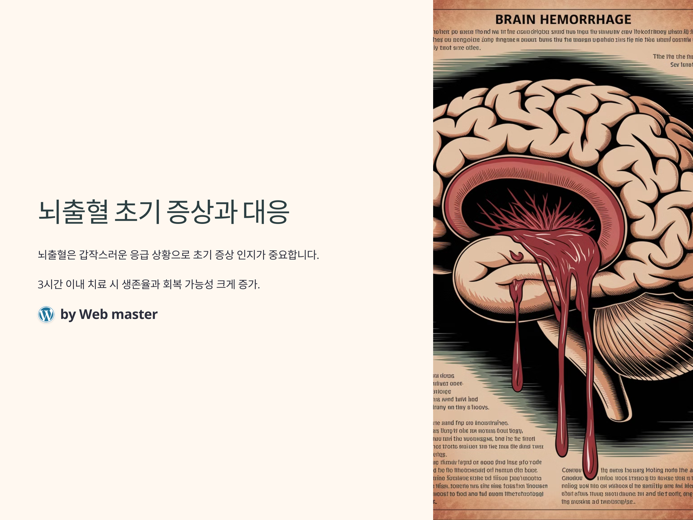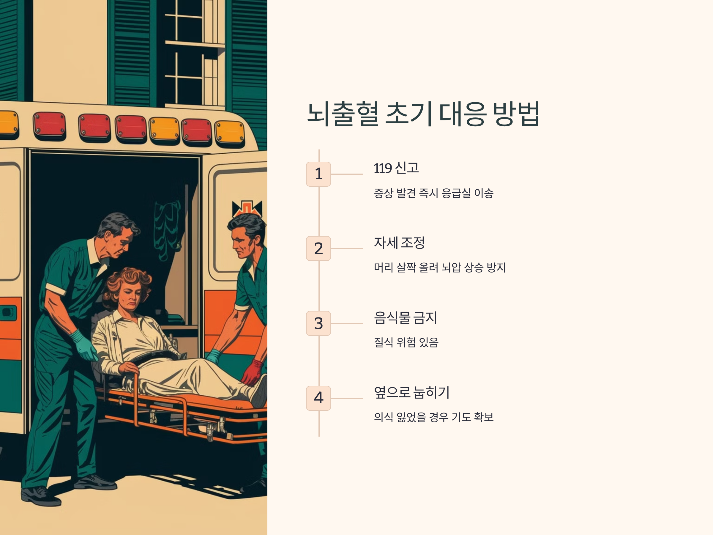 뇌출혈이 의심될 때는 골든 타임(3시간 이내)이 가장 중요합니다. 다음의 응급 조치를 빠르게 시행해야 합니다.
