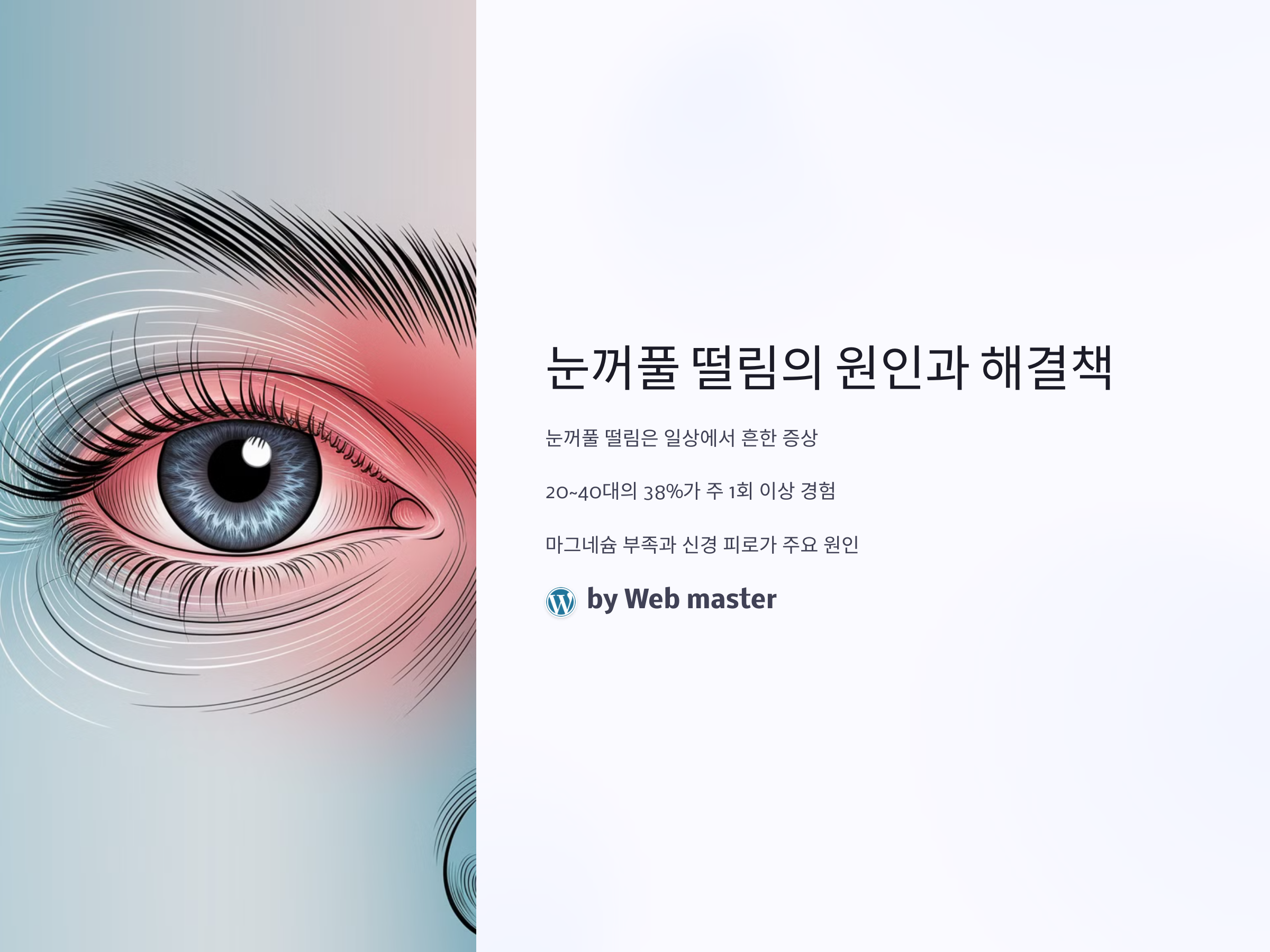 눈꺼풀이 자꾸 떨리는 증상은 일상에서 누구나 한 번쯤 겪어봤을 흔한 증상이지만, 원인을 제대로 파악하지 않으면 스트레스만 쌓이기 쉽습니다. 특히 요즘처럼 업무 강도가 높고 디지털 기기 사용이 일상화된 환경에서는 이런 미세한 떨림이 자주 발생하곤 합니다. 최근 건강 커뮤니티와 의료 전문 포럼에서는 이 증상의 주요 원인으로 ‘마그네슘 부족’과 ‘신경 피로’를 동시에 지목하고 있으며, 각 원인이 몸에 미치는 영향과 회복 속도가 다르기 때문에 구분이 필요합니다.