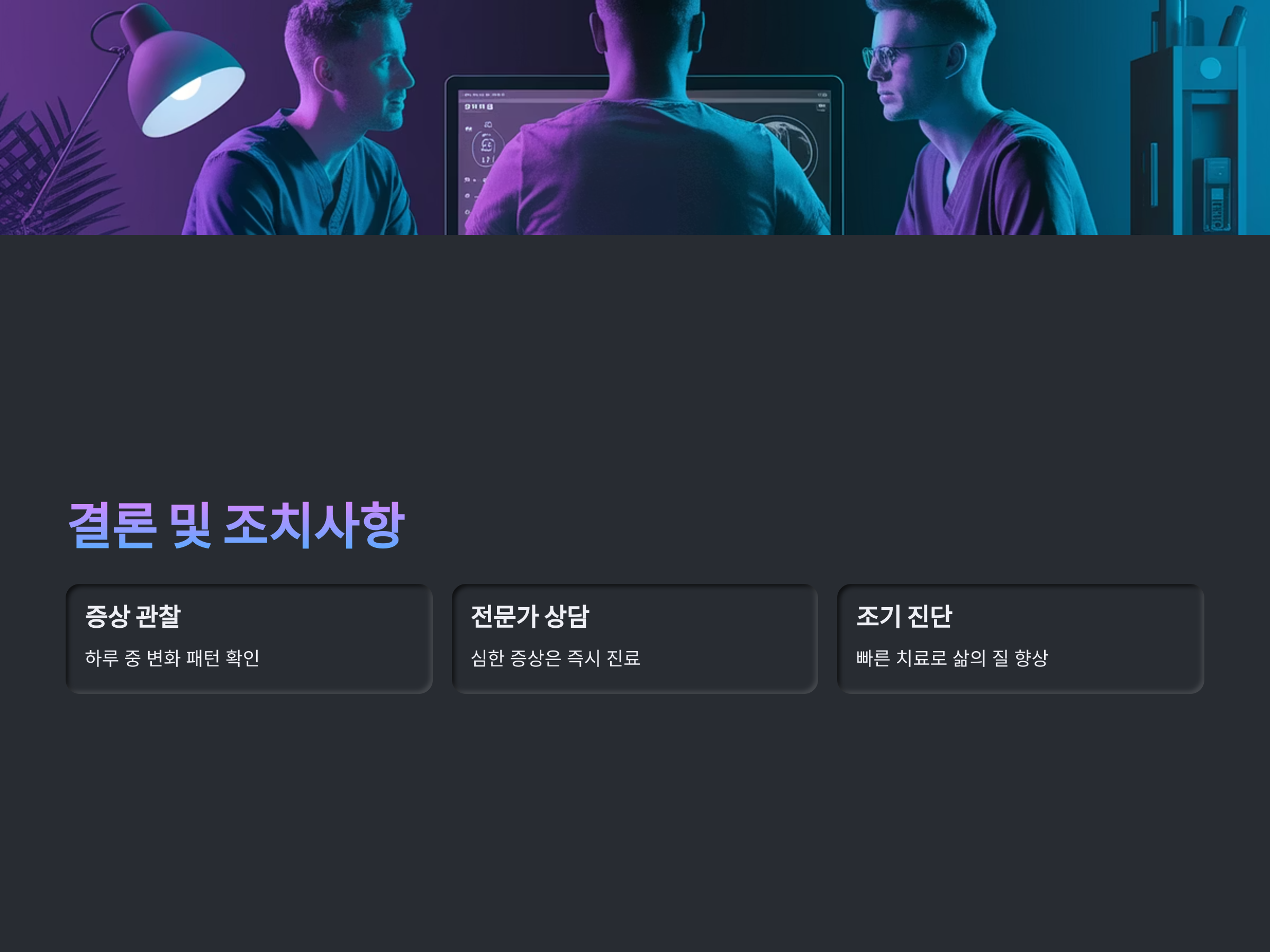 - 아침에 비해 오후나 저녁에 증상이 더 뚜렷해짐