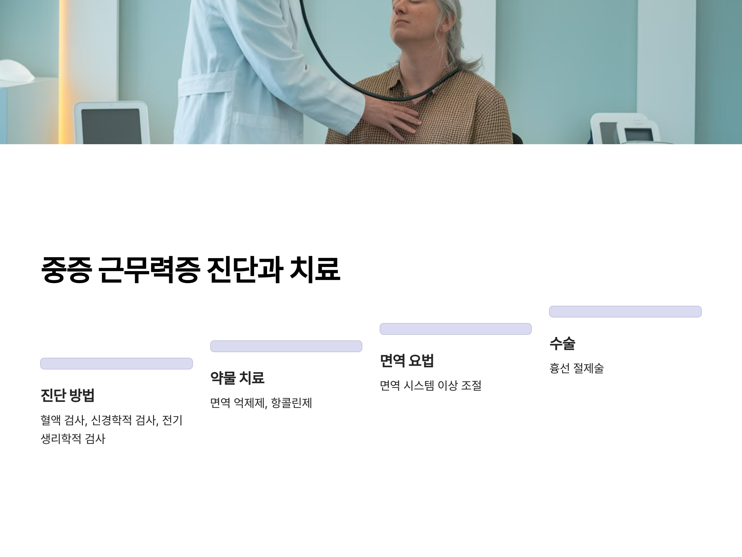 - 수술: 특정 경우에는 흉선 절제술이 필요할 수 있습니다.