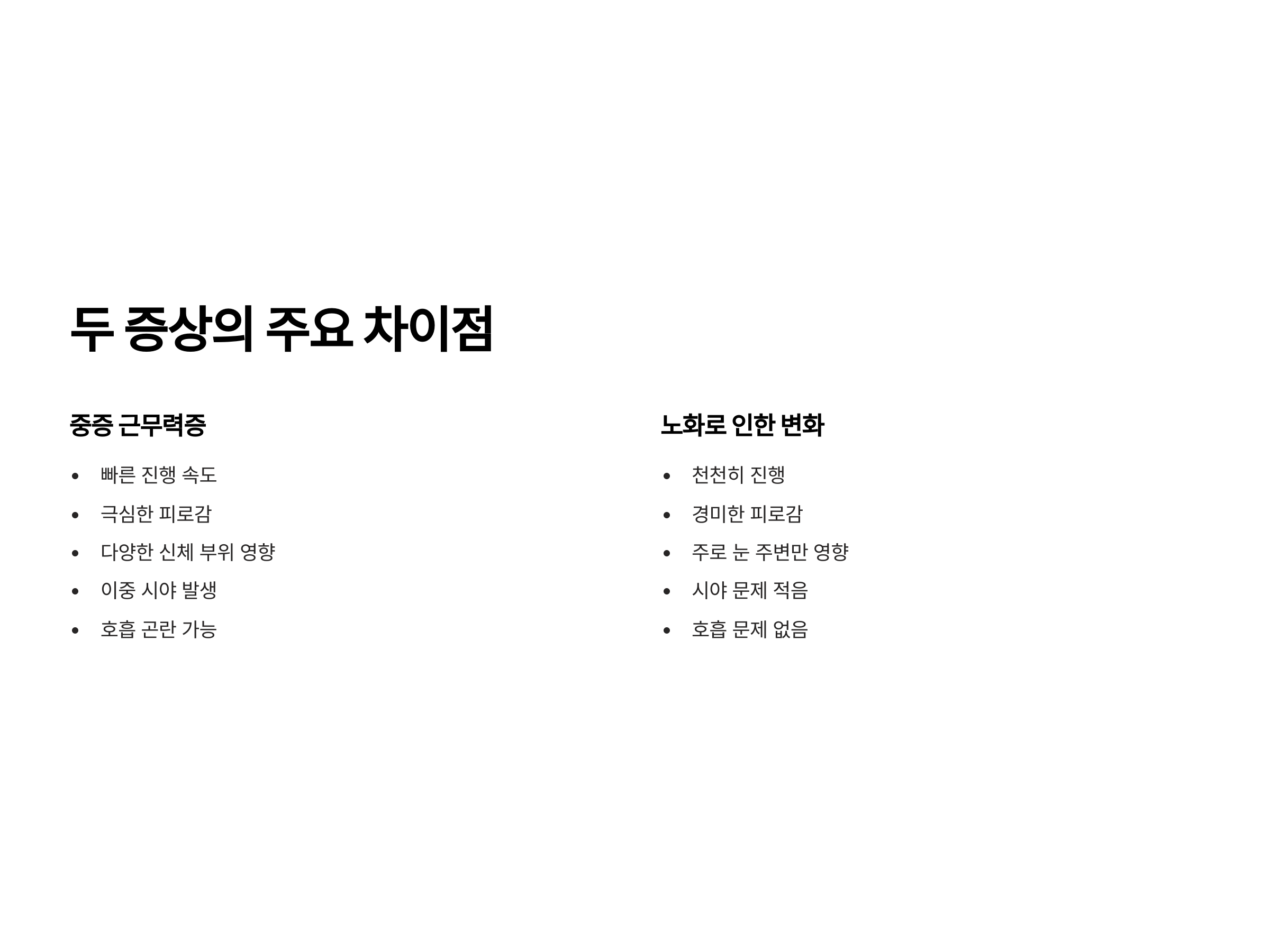 중증 근무력증과 노화로 인한 변화의 주요 차이점