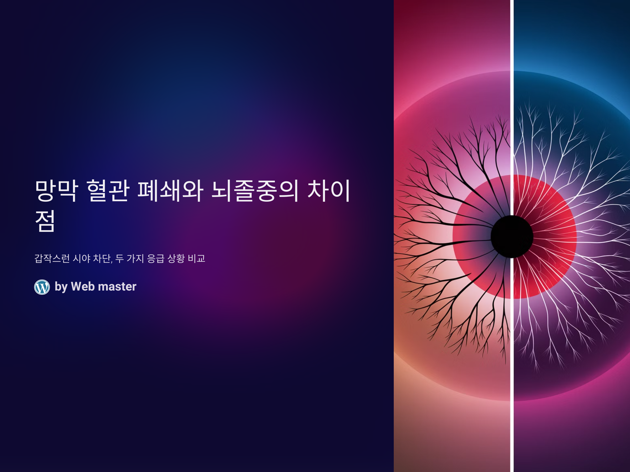 눈앞이 갑자기 검게 변하거나 시야가 차단되는 경험은 매우 놀라운 증상입니다. 이런 증상이 나타날 때, 많은 사람들이 망막 혈관 폐쇄나 뇌졸중 중 어느 쪽에 해당하는지 혼란스러워할 수 있습니다. 두 가지 모두 응급 상황에 해당하며, 그 차이를 정확히 이해하는 것이 매우 중요합니다. 이 글에서는 망막 혈관 폐쇄와 뇌졸중의 차이점을 명확히 구분하여 설명하고, 어떻게 대응해야 하는지에 대해서도 알아보겠습니다.