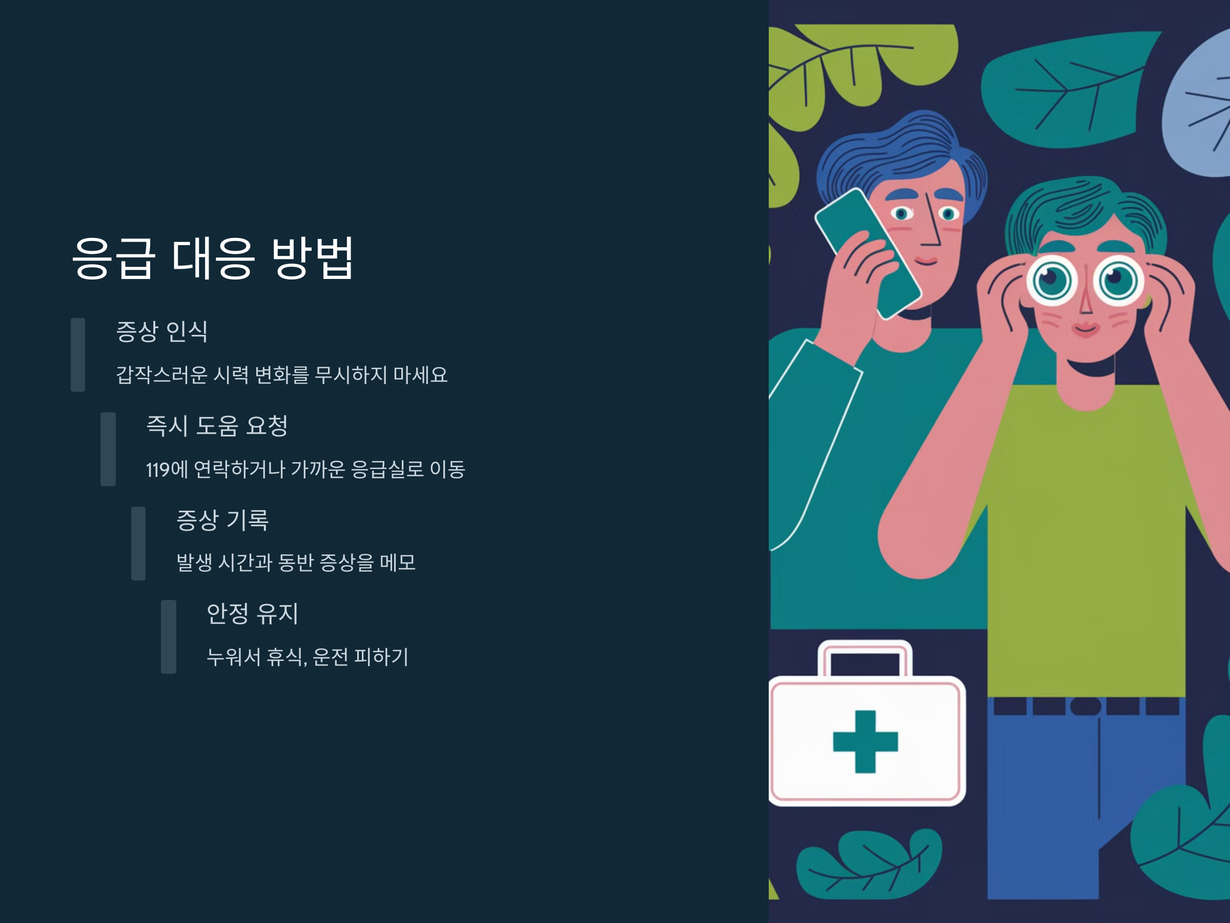 눈앞이 갑자기 어두워지고 시야가 차단됨 망막 혈관 폐쇄 vs 뇌졸중
