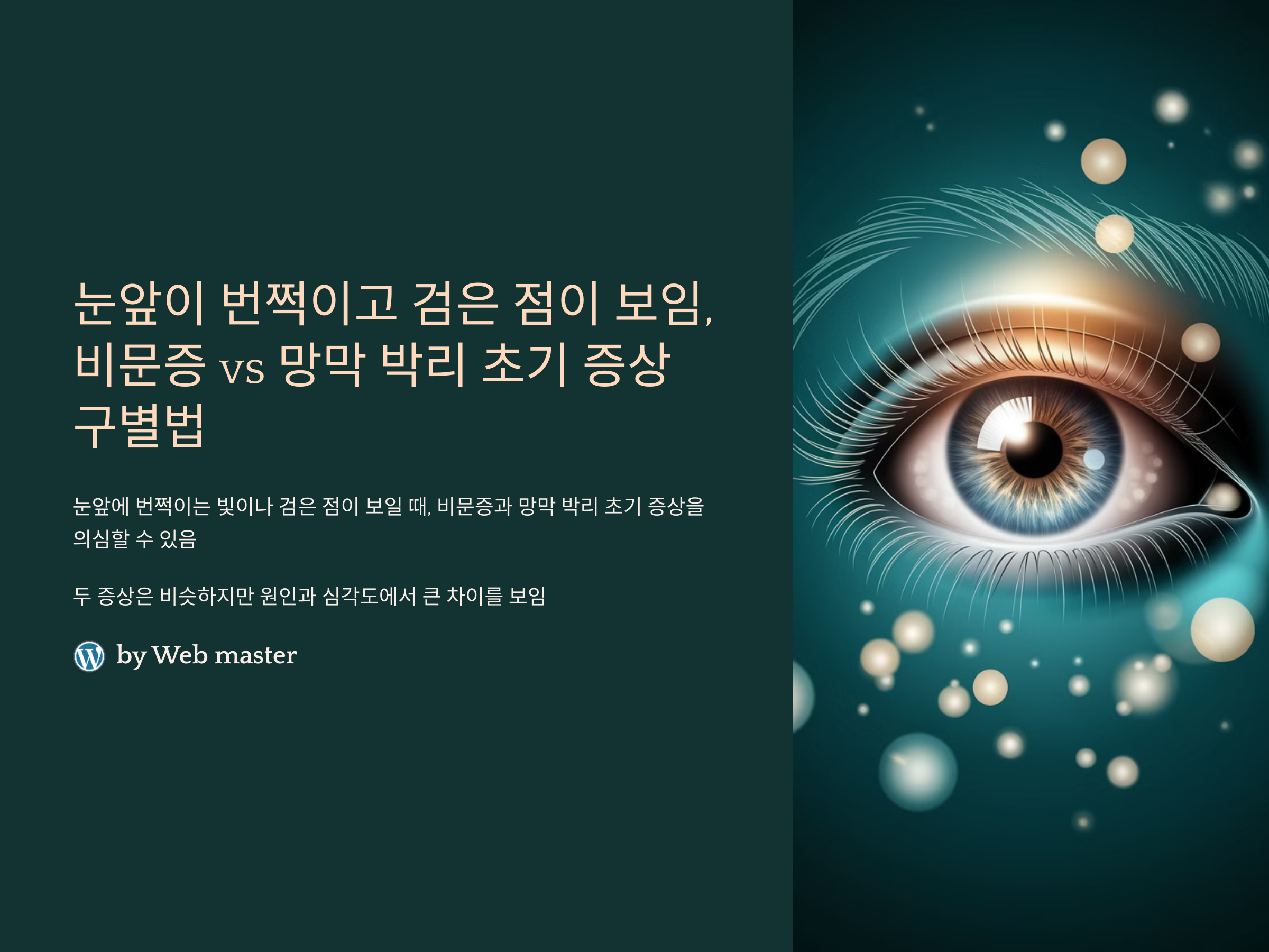 눈앞에 번쩍이는 빛이나 검은 점이 보일 때, 그 원인으로 비문증과 망막 박리 초기 증상을 의심할 수 있습니다. 두 증상은 비슷하게 느껴질 수 있지만, 그 원인과 심각도에서 큰 차이를 보입니다. 이를 제대로 구별하는 것이 중요하며, 이번 포스트에서는 비문증과 망막 박리의 차이점과 각 증상에 대한 자세한 정보를 제공하겠습니다.