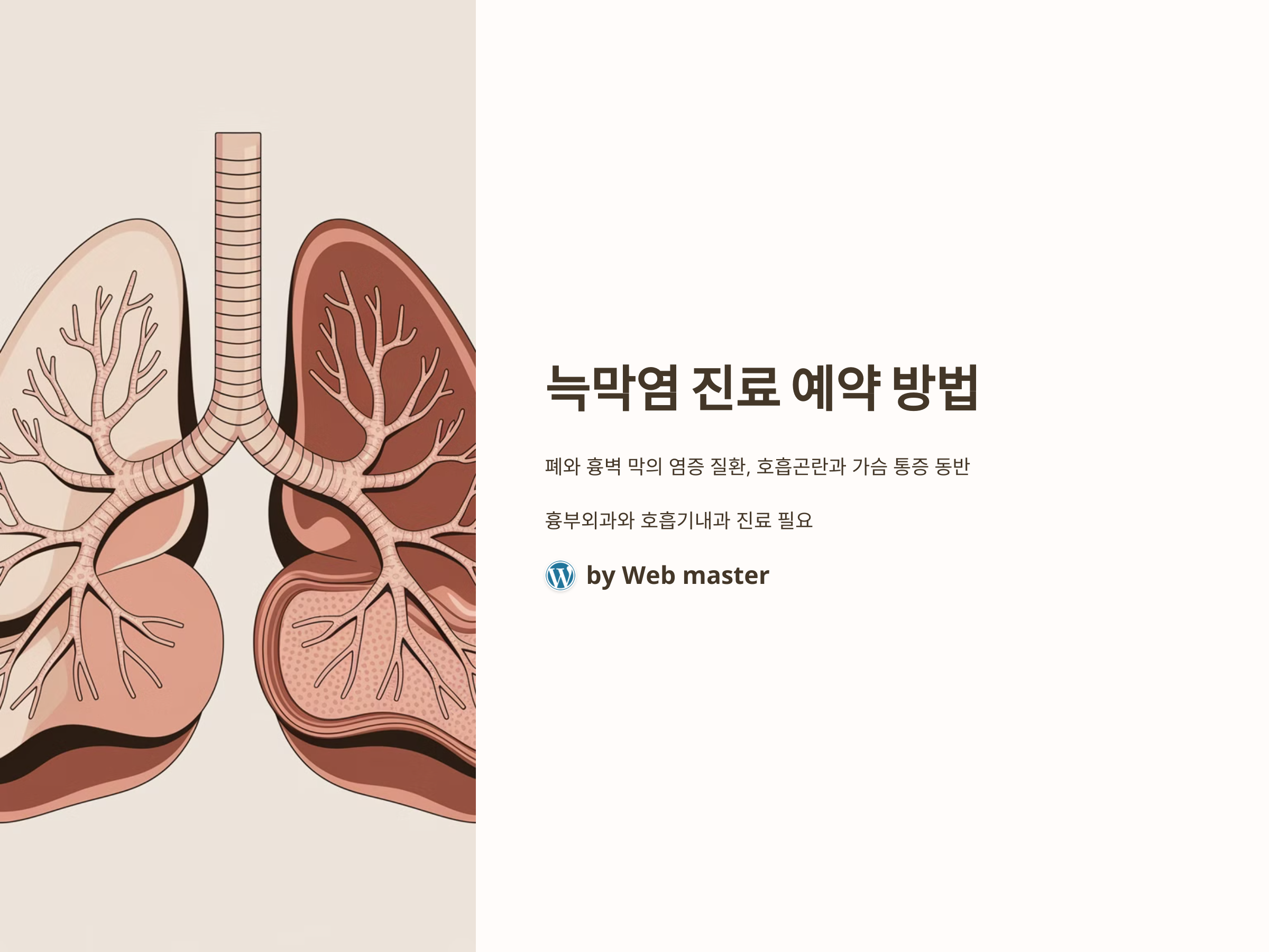 늑막염은 조기에 진단하고 적절한 치료를 받는 것이 중요한 질환입니다. 흉부외과와 호흡기내과에서는 환자의 상태에 맞는 맞춤형 치료를 제공합니다. 늑막염을 의심할 때, 정확한 진단을 위해 해당 과에서 진료 예약을 진행하고, 병원 예약 방법을 잘 따라야 합니다. 이 글에서 소개한 예약 방법을 참고하여, 늑막염의 진료 예약과 치료에 어려움 없이 접근할 수 있기를 바랍니다.