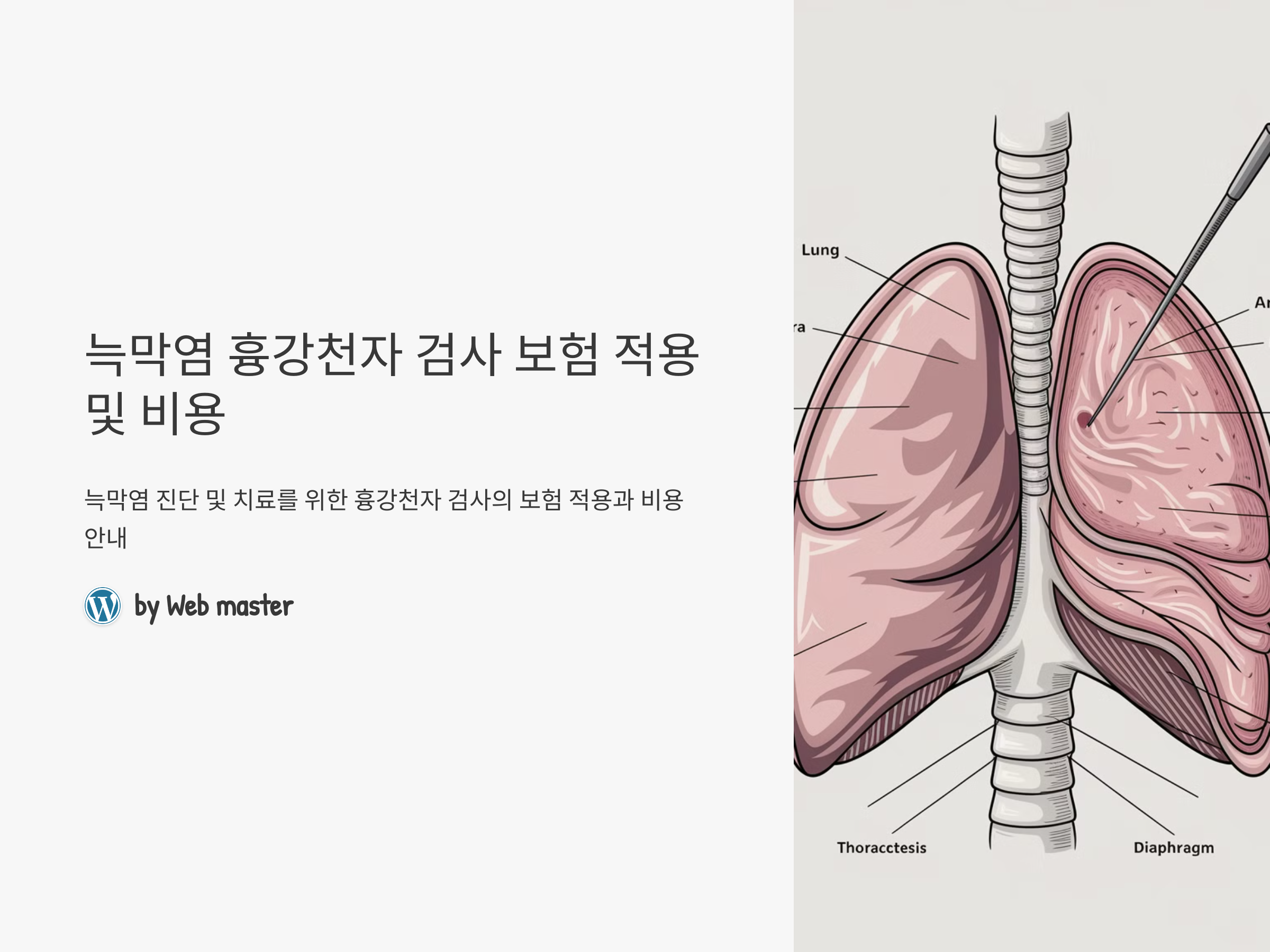 늑막염은 폐를 둘러싸고 있는 얇은 막인 늑막에 염증이 생기는 질환으로, 호흡 곤란이나 가슴 통증을 일으킬 수 있습니다. 늑막염을 진단하는 방법 중 하나로 흉강천자 검사(Thoracentesis)가 중요한 역할을 합니다. 흉강천자 검사는 흉강에 있는 액체를 채취해 분석하는 검사로, 염증의 원인을 파악하고 치료 방법을 결정하는 데 필수적인 정보를 제공합니다. 하지만 이 검사에 대해 많은 사람들이 궁금해하는 점은 보험 적용 여부와 검사 비용입니다.