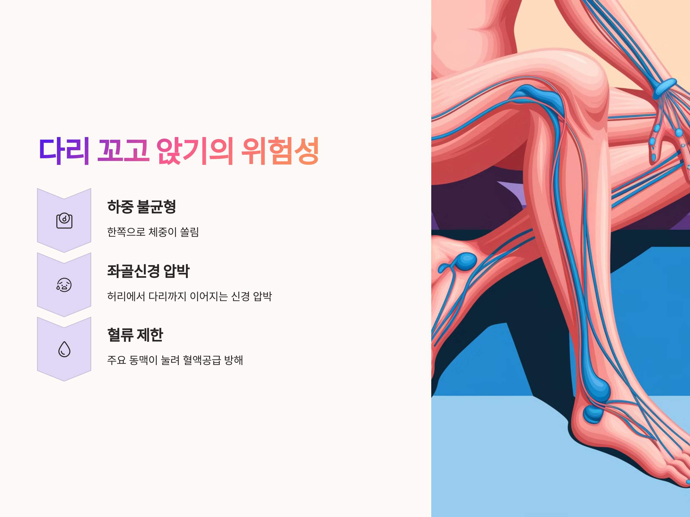 앉을 때마다 무심코 다리를 꼬는 습관, 이게 어느 순간부터 발 저림이나 쿡쿡 쑤시는 통증으로 이어진다면 좌골신경통일까요, 아니면 단순한 혈액순환 문제일까요? 최근 구글 트렌드에 따르면 ‘다리 꼬고 앉기’와 관련된 통증 키워드 검색량이 급증하고 있으며, 특히 사무직 직장인들과 재택근무자 사이에서 이러한 증상에 대한 관심이 높아지고 있습니다. 좌골신경통은 허리부터 엉덩이, 다리까지 이어지는 좌골신경의 압박에 의해 발생하며, 일상 속 잘못된 자세가 이를 유발할 수 있습니다. 반면 혈액순환 장애는 장시간 같은 자세로 인해 혈류가 차단되면서 말초신경의 이상 증상을 일으킬 수 있습니다. 이 둘의 차이를 제대로 구분하지 못하면 치료 시기를 놓치거나 악화될 수 있으므로 정확한 정보가 필요합니다. 본 포스트에서는 이러한 증상의 원인과 구분법, 예방 및 치료 방법까지 체계적으로 안내합니다. 나도 모르게 방치하고 있던 건강 적신호, 지금 바로 확인해보세요.