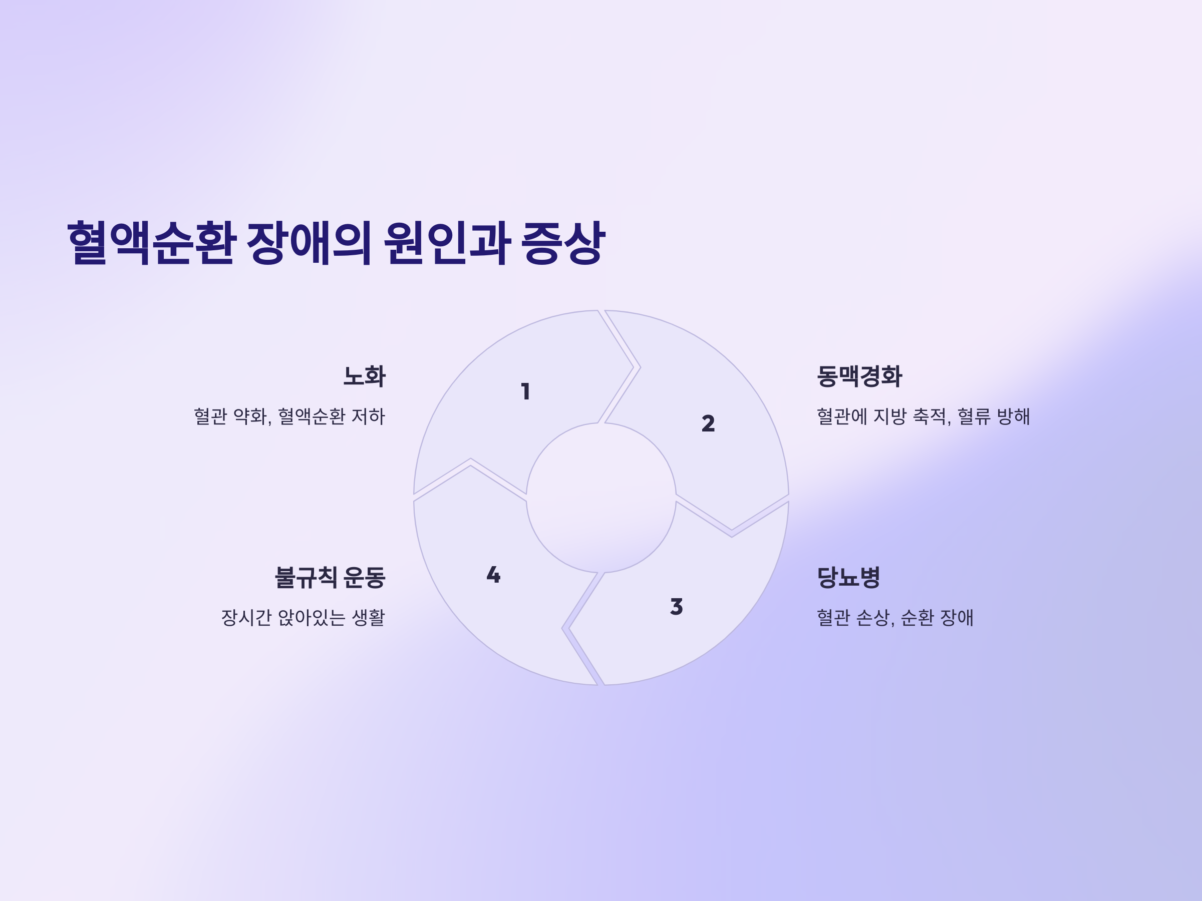 - 노화: 나이가 들면서 혈관이 약해지거나 좁아져 혈액순환이 원활하지 않게 됩니다.