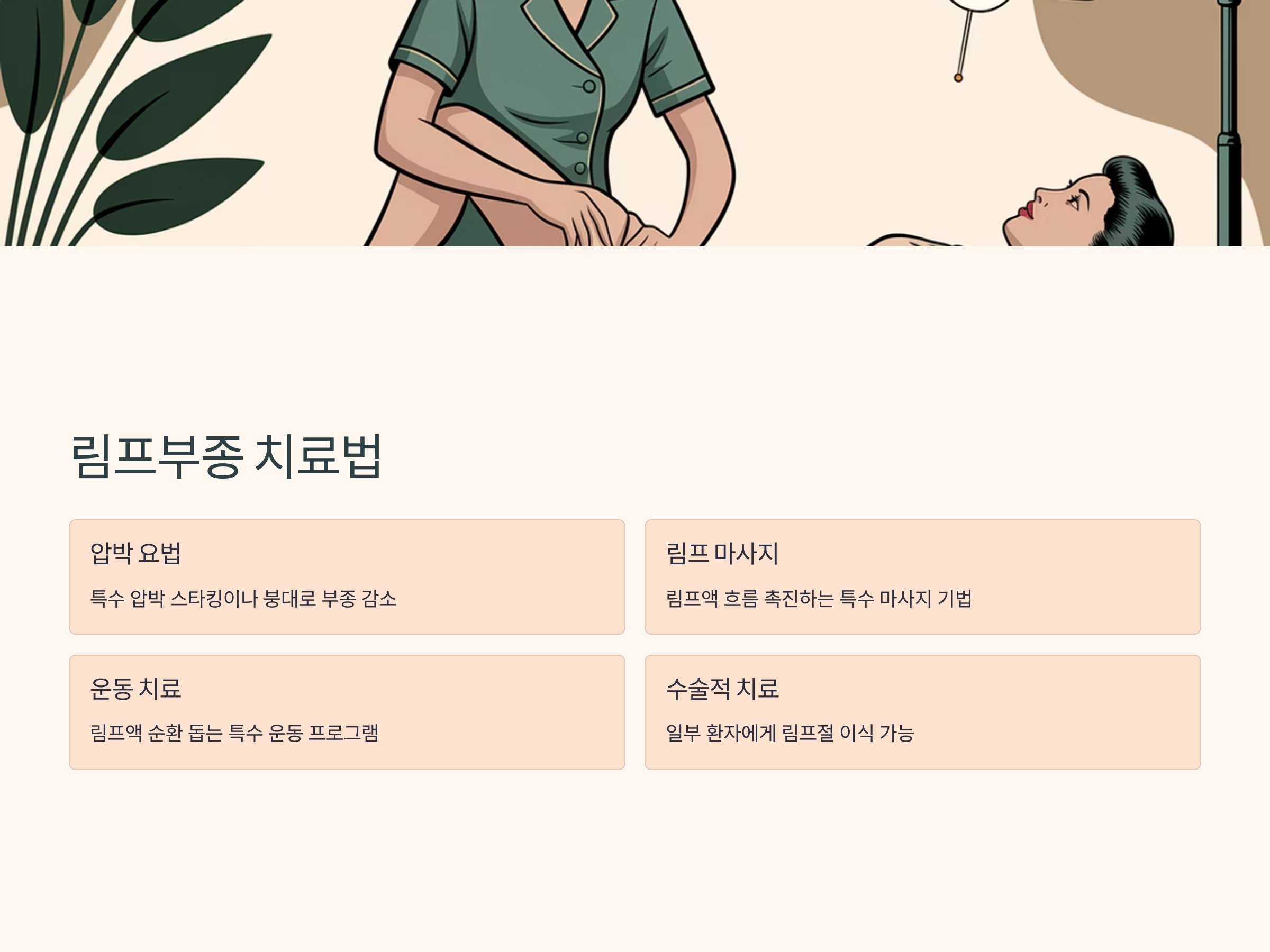 - 림프부종 치료법: 림프부종은 림프액이 정상적으로 흐를 수 있도록 돕는 치료가 필요합니다. 대표적인 치료법으로는 압박 요법, 림프 마사지(MLD), 운동 치료 등이 있습니다. 또한, 일부 환자에게는 림프절 이식이나 수술적 치료가 필요할 수 있습니다.