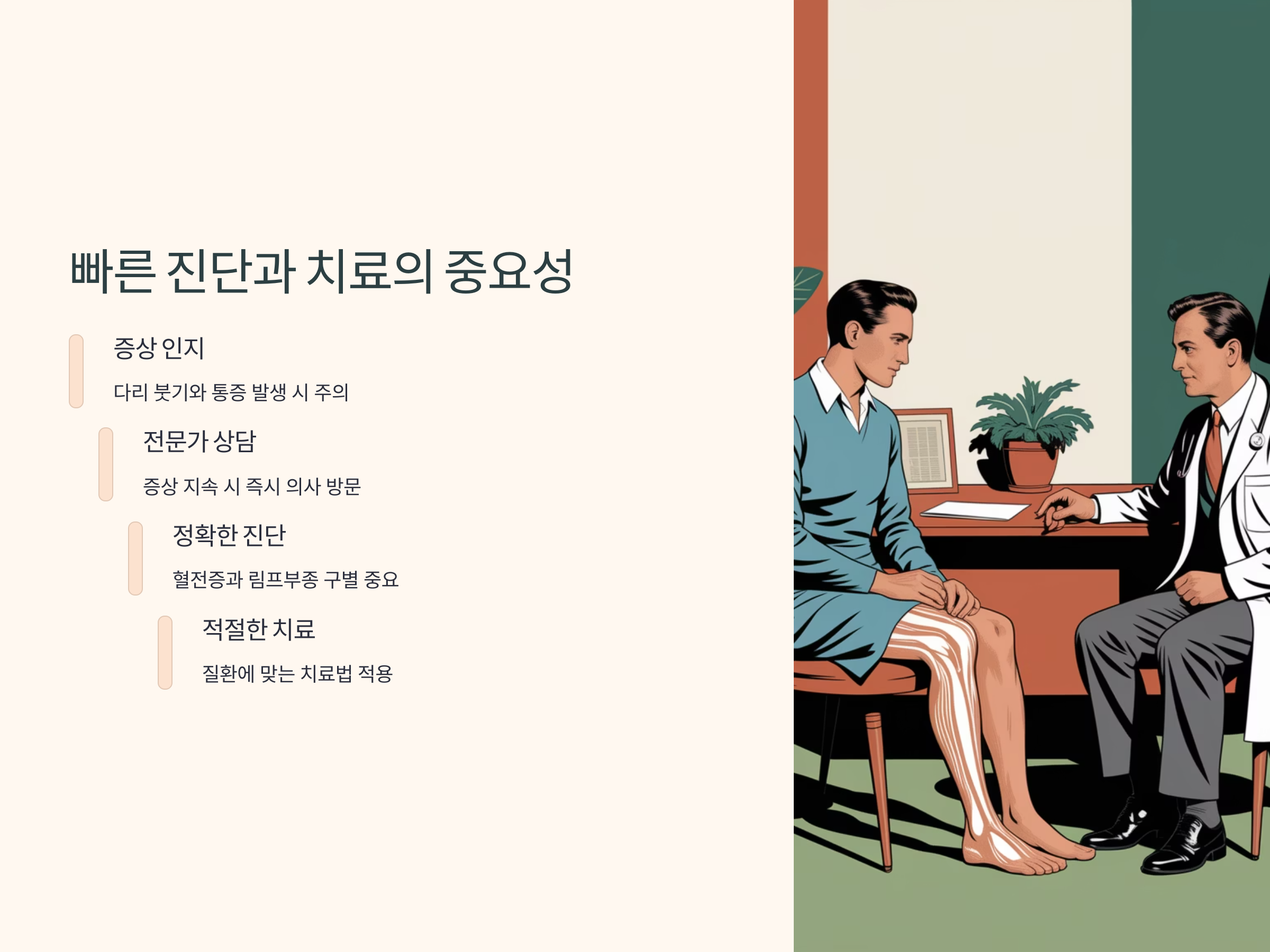 혈전증과 림프부종은 치료 방법에서 중요한 차이가 있습니다. 각 질환에 대한 적절한 치료를 받는 것이 매우 중요합니다.