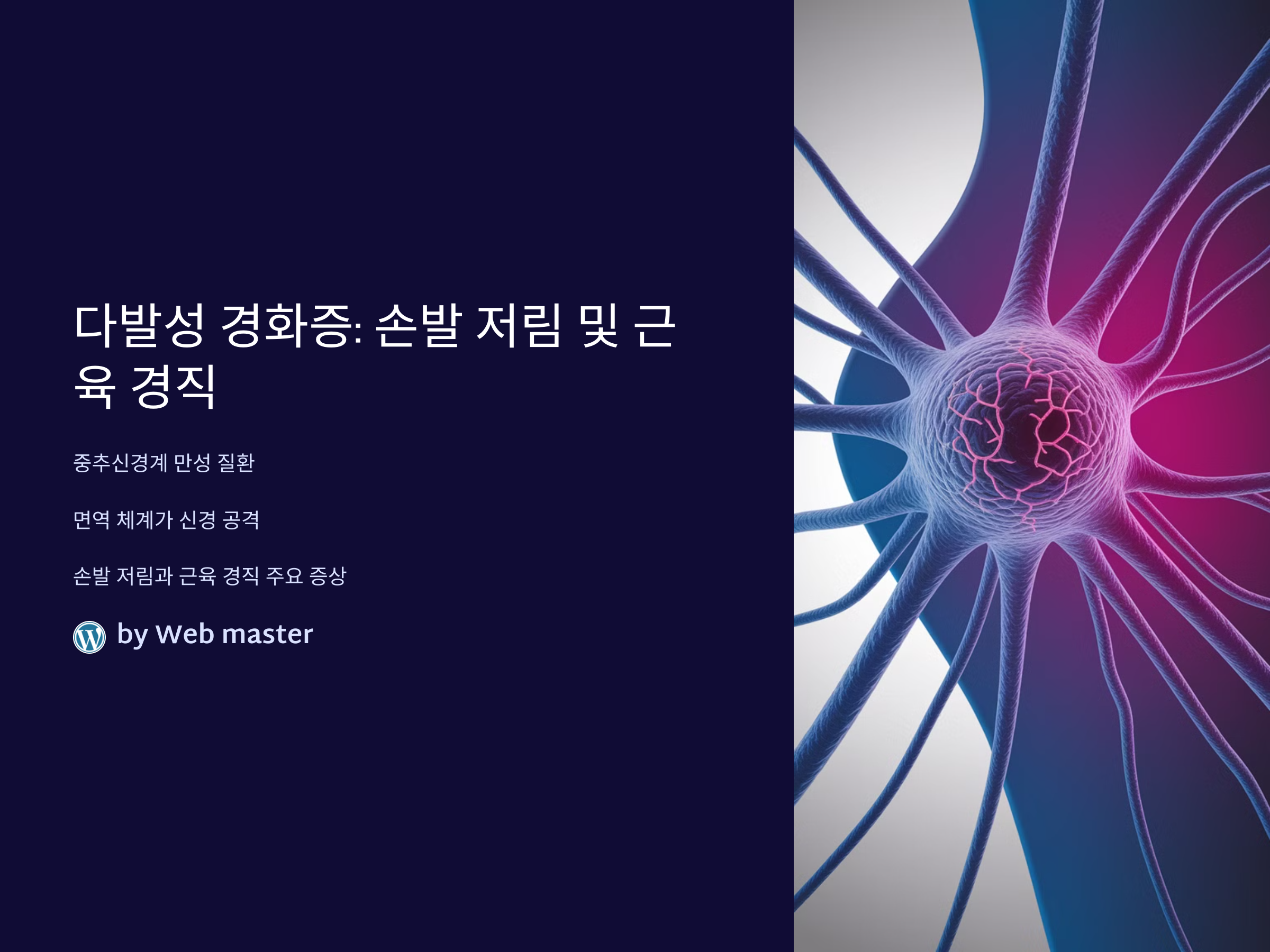 다발성 경화증(Multiple Sclerosis, MS)은 중추신경계에 영향을 미치는 만성 질환으로, 다양한 신경학적 증상을 유발할 수 있습니다. 그 중에서도 손발 저림과 근육 경직은 많은 환자들이 경험하는 주요 증상입니다. MS는 면역 체계가 중추신경계를 공격하여 신경 손상을 일으키며, 이로 인해 손발 저림과 경직이 발생할 수 있습니다. 이러한 증상은 환자의 삶의 질에 큰 영향을 미칠 수 있으므로, 이를 제대로 이해하고 적절한 관리 방법을 찾는 것이 중요합니다.
