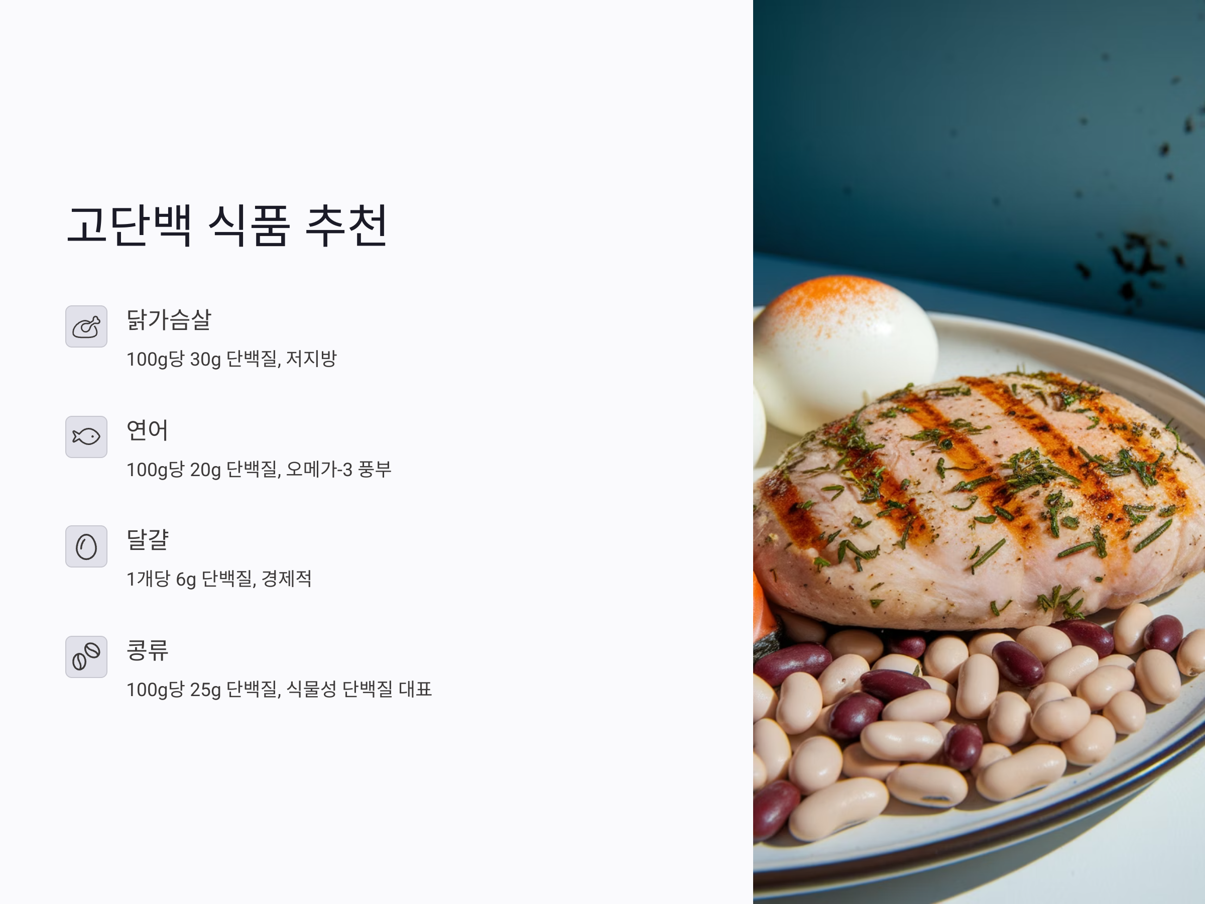 달걀은 경제적이면서도 고단백 식품으로, 1개의 달걀에는 약 6g의 단백질이 포함되어 있습니다. 특히 달걀의 흰자는 순수 단백질로, 근육 형성에 매우 유용합니다. 하루에 2~3개의 달걀을 섭취하는 것만으로도 단백질을 쉽게 보충할 수 있습니다.