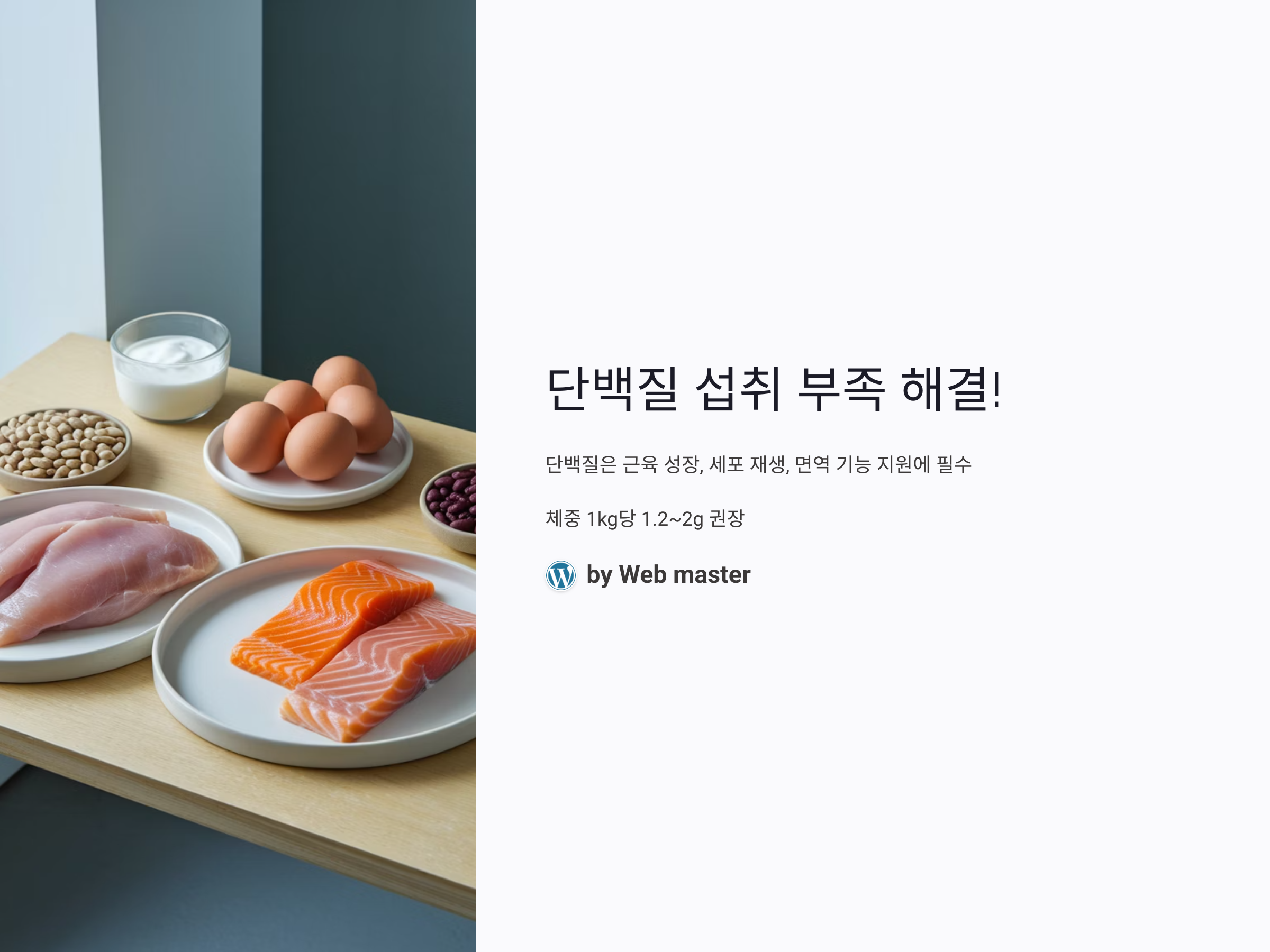 단백질 섭취 부족을 해결하는 것은 단순히 근육을 키우는 것뿐만 아니라, 전반적인 건강을 유지하는 데 매우 중요합니다. 고단백 식품과 단백질 보충제를 적절히 활용하여 균형 잡힌 식사를 통해 단백질을 충분히 섭취하세요. 꾸준한 단백질 보충은 건강한 체중 관리와 체력 향상에 도움이 될 것입니다.