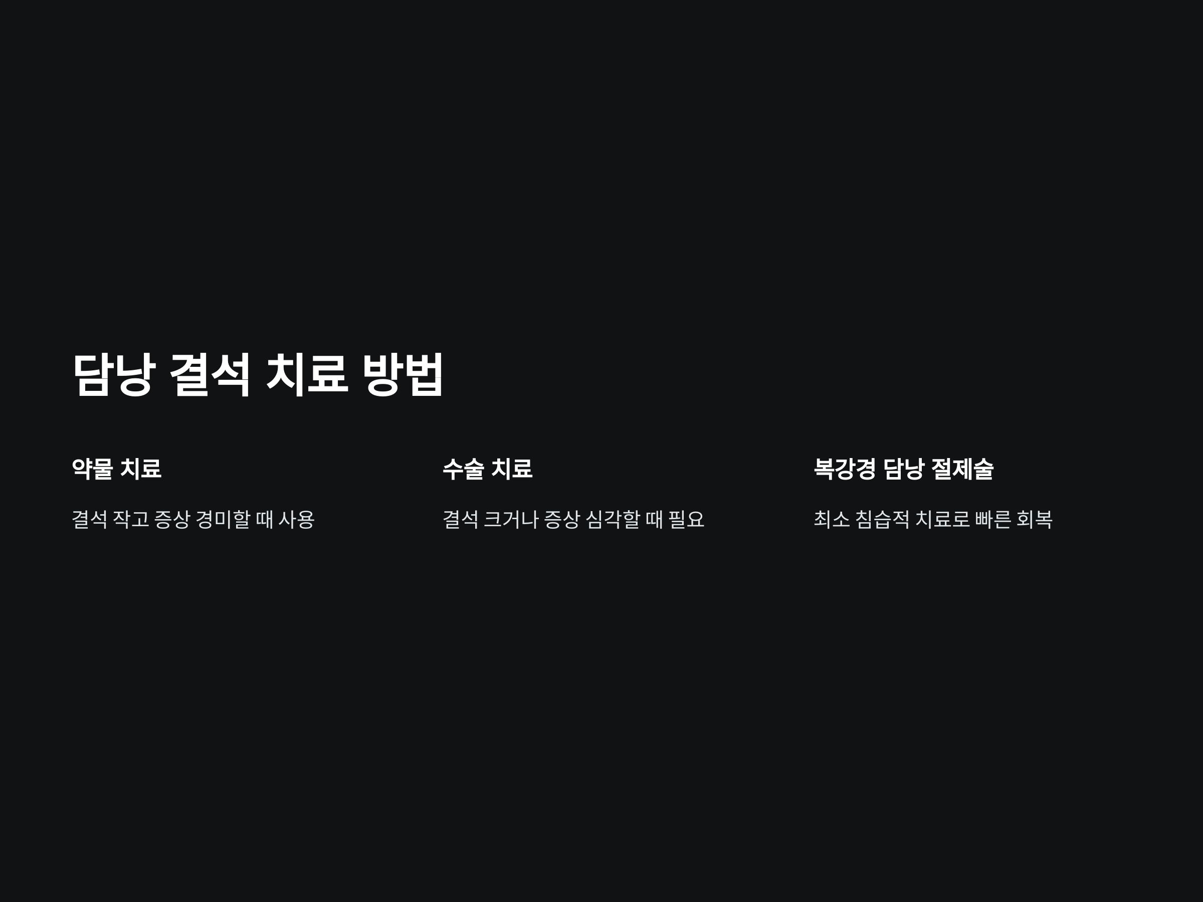 담낭 결석 치료는 주로 약물 치료와 수술 치료로 나뉩니다. 약물 치료는 결석이 작고 증상이 경미할 때 사용되며, 결석이 크거나 증상이 심한 경우에는 수술이 필요합니다. 수술의 경우 복강경 담낭 절제술이 널리 사용되는데, 이는 개복 수술보다 회복이 빠르고, 통증이 적다는 장점이 있습니다.