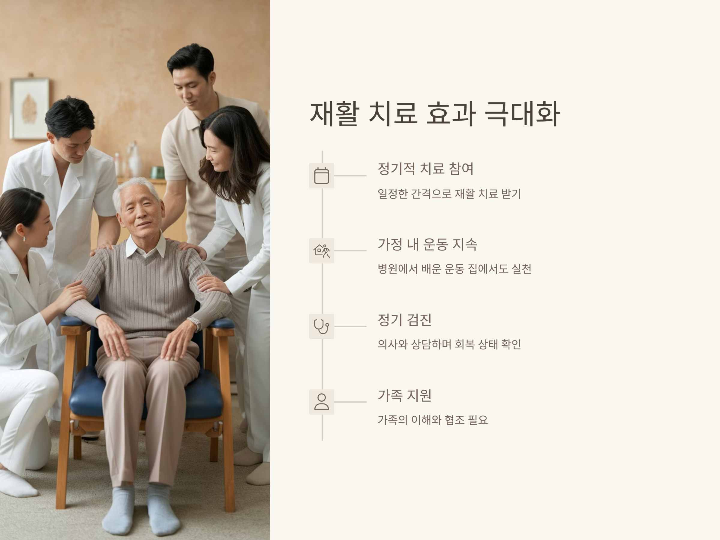 대동맥류 치료 후 재활은 병원에서의 치료뿐 아니라 일상생활에서의 관리도 필요합니다. 병원에서 받은 재활 치료를 집에서도 지속적으로 이어가야 하며, 생활습관을 개선하는 것도 중요한 부분입니다. 특히, 규칙적인 운동, 건강한 식습관, 정기적인 건강검진이 필요합니다.