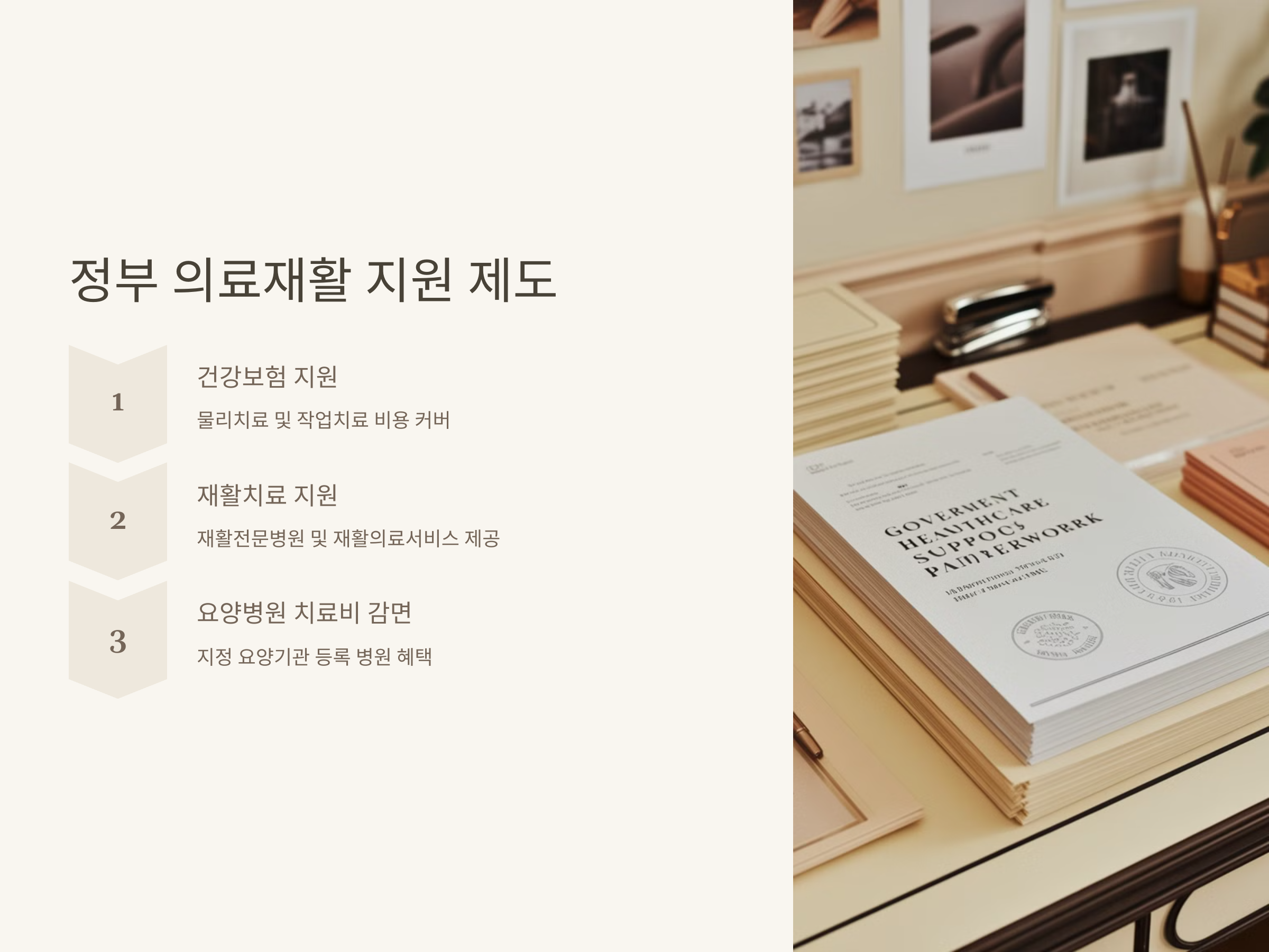 정부는 대동맥류 수술 후 환자들이 효과적인 재활을 받을 수 있도록 다양한 의료재활 지원 제도를 운영하고 있습니다. 대표적인 지원 제도는 건강보험을 통한 치료비 지원, 재활병원 및 요양병원에서 제공하는 치료비 감면 등이 있습니다. 이 제도는 환자들이 경제적인 부담 없이 필요한 재활 치료를 받을 수 있도록 도와줍니다.