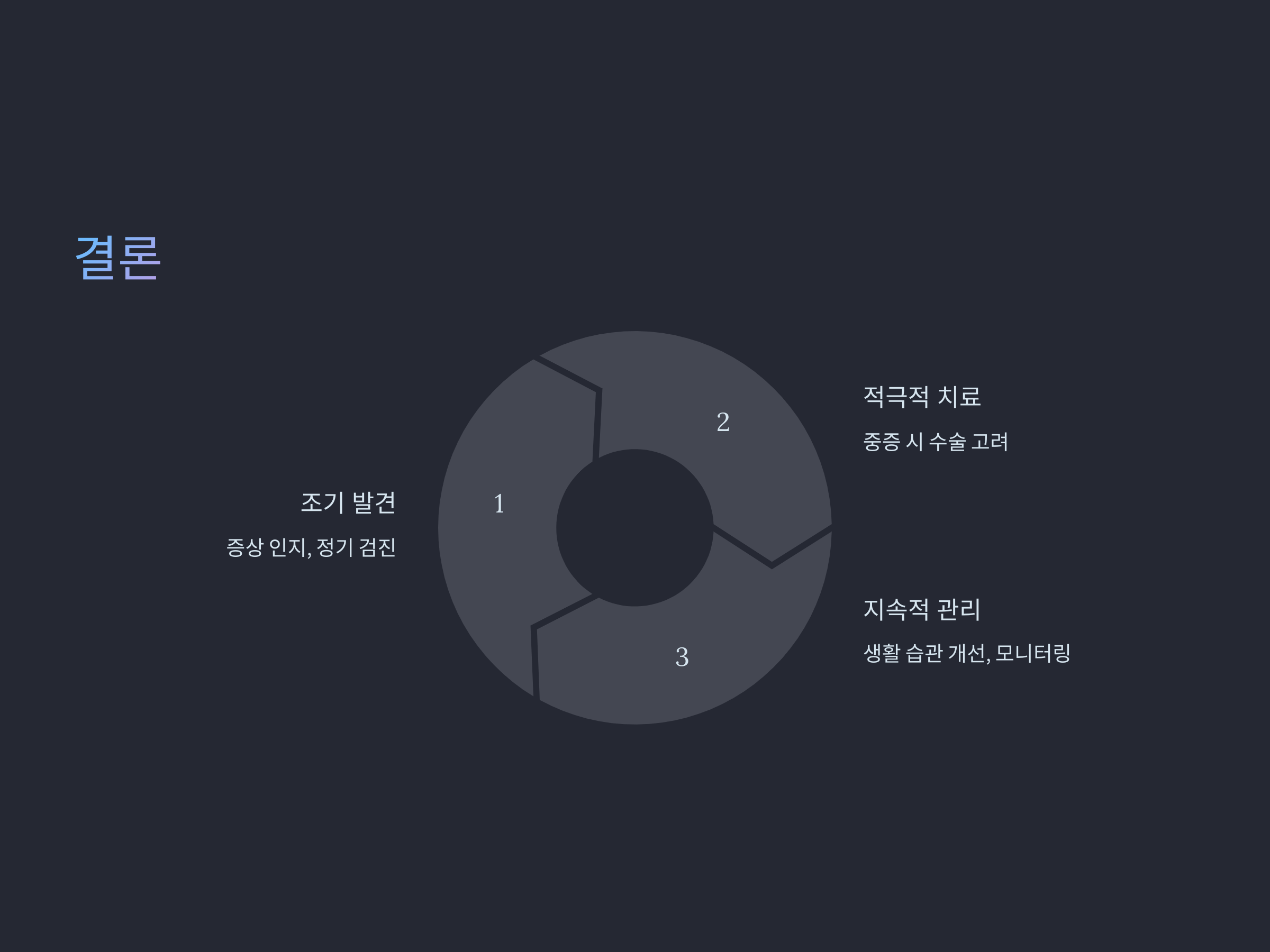 - 증상이 없거나 경미한 경우 주기적인 검사를 통해 경과를 관찰합니다.
