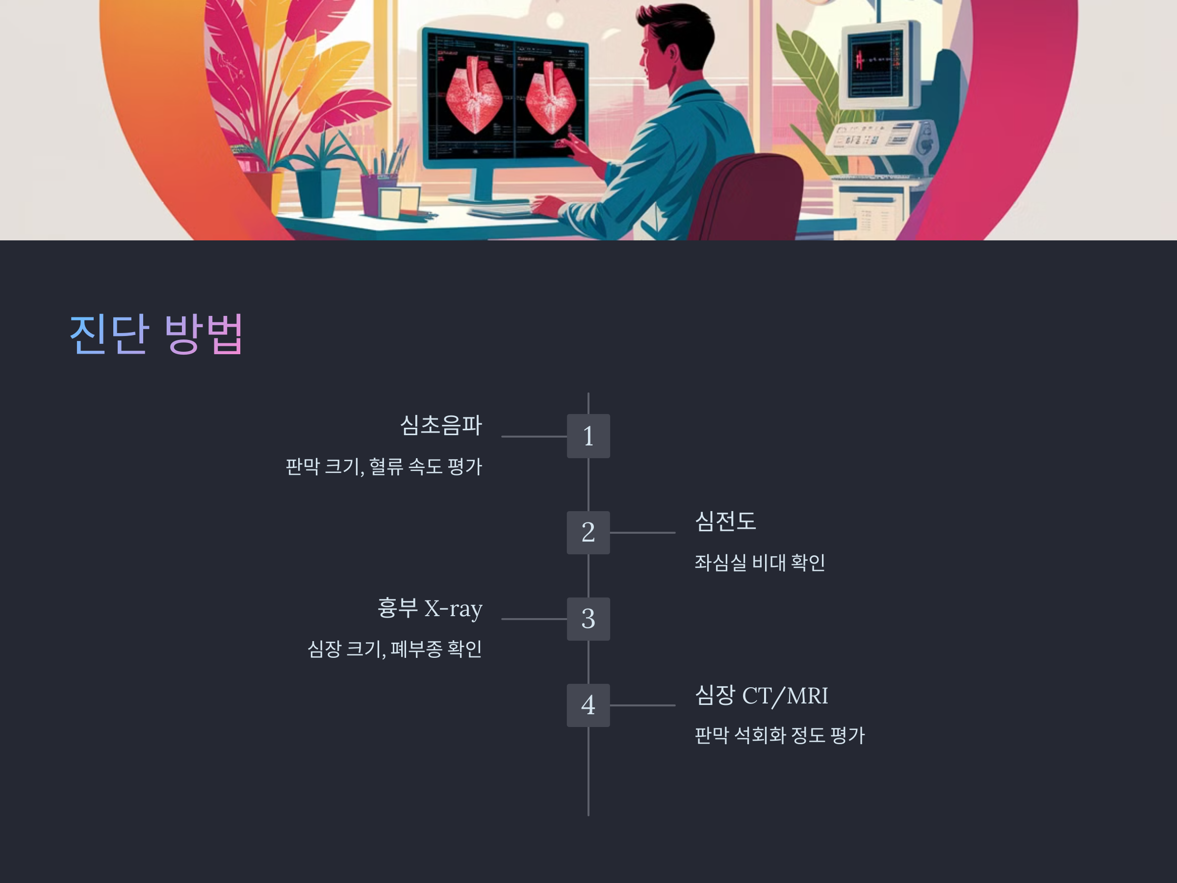 대동맥 판막 협착이 의심되는 경우, 다음과 같은 검사를 통해 정확한 진단이 가능합니다.