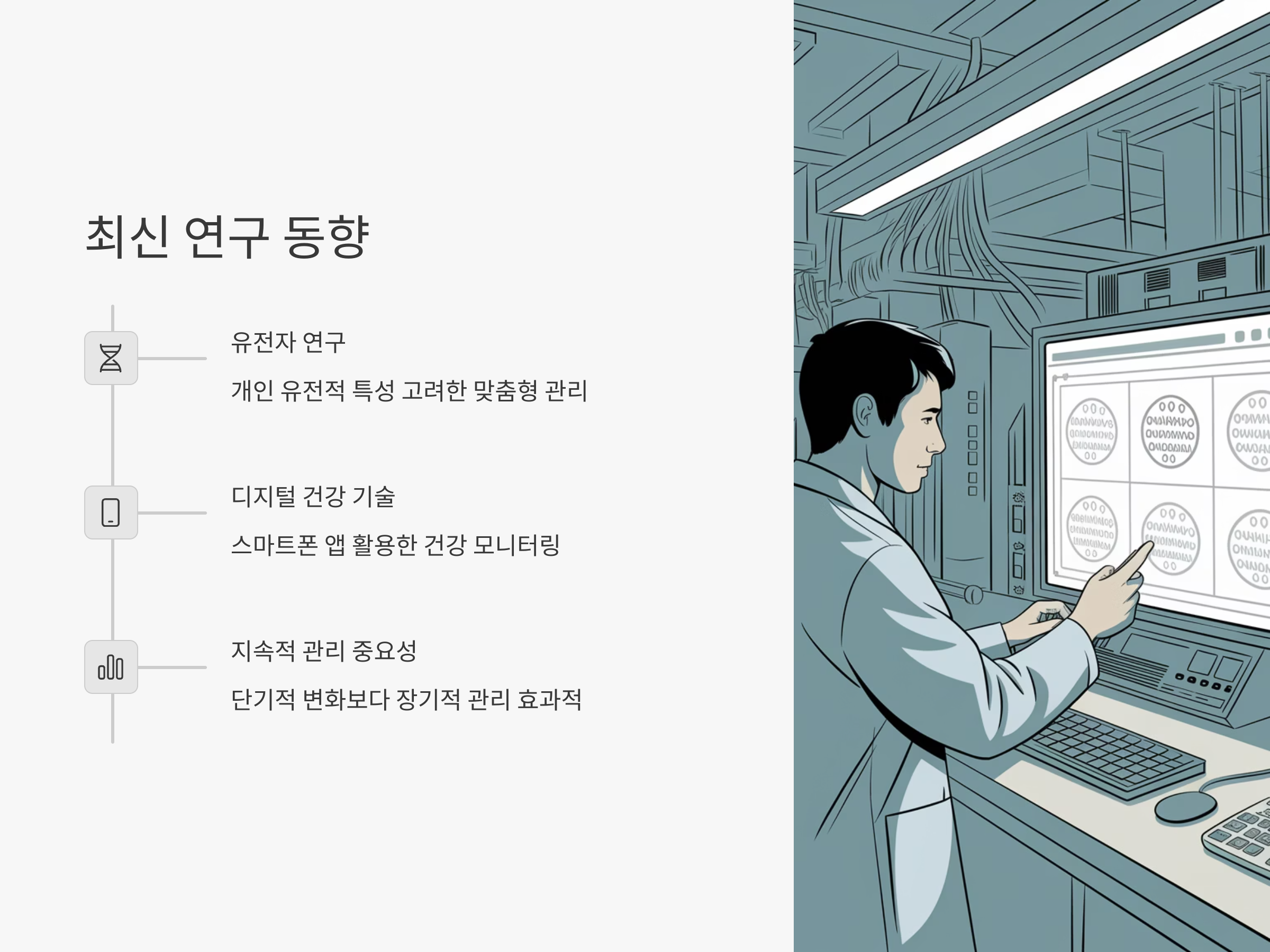 대사 증후군의 예방과 관리를 위한 연구는 꾸준히 진행되고 있습니다. 최신 연구에 따르면, 대사 증후군을 예방하기 위해서는 단기적인 변화보다 지속적인 관리가 필요하다는 결론이 나왔습니다. 또한, 유전자와 관련된 연구도 활발히 이루어지고 있으며, 개인의 유전적 특성을 고려한 맞춤형 관리 방법이 제시되고 있습니다.