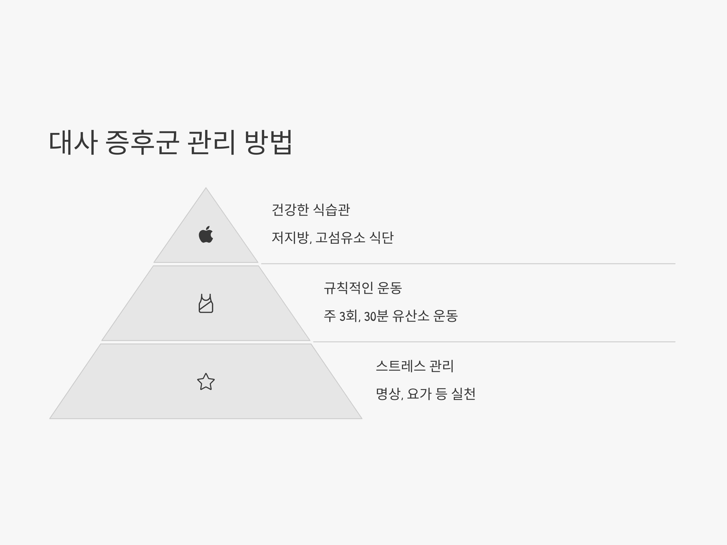 스트레스는 호르몬 분비와 관련이 있어 대사 증후군의 발병에 영향을 미칠 수 있습니다. 명상이나 요가 등 스트레스 관리 방법을 실천하는 것이 좋습니다.