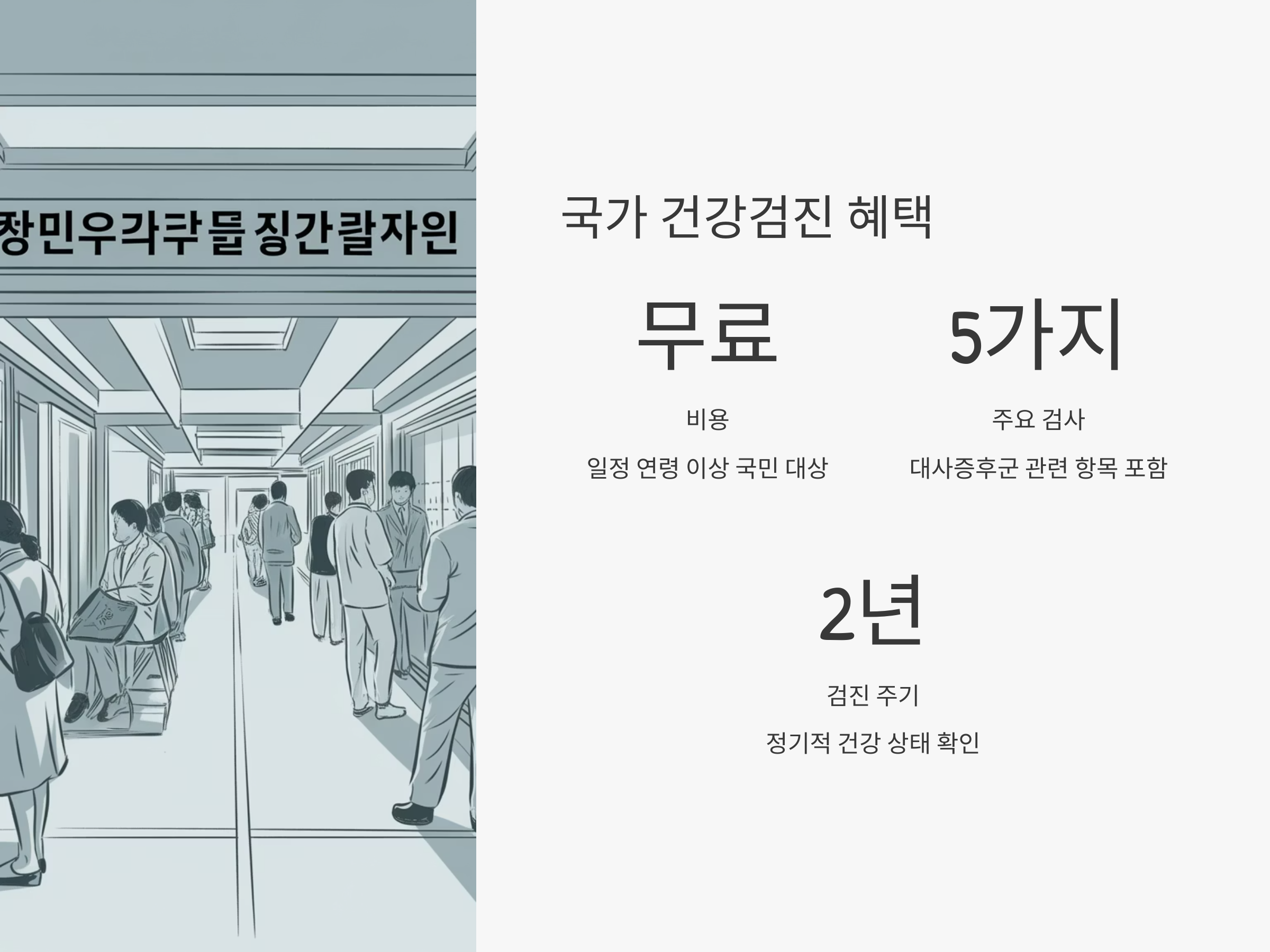 국민 건강보험공단에서 제공하는 국가 건강검진을 통해 대사 증후군을 미리 진단하고 예방할 수 있는 기회를 제공하고 있습니다. 국가 건강검진은 일정한 연령 이상인 국민에게 무료로 제공되며, 대사 증후군과 관련된 여러 가지 검사를 포함하고 있습니다. 이 건강검진을 통해 어떤 항목들이 포함되는지, 대사 증후군 예방을 위한 검사의 중요성에 대해 자세히 살펴보겠습니다.