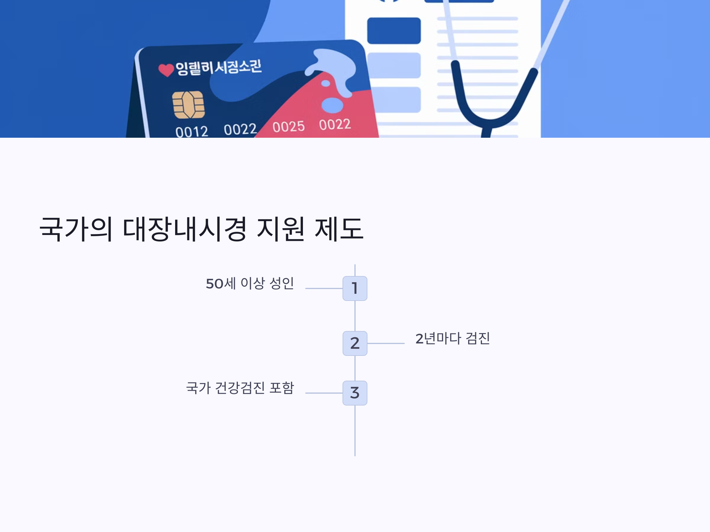 - 연령 요건: 만 50세 이상인 국민이 대상입니다. 이 나이가 되면 2년에 한 번씩 건강검진으로 대장내시경을 받을 수 있습니다.