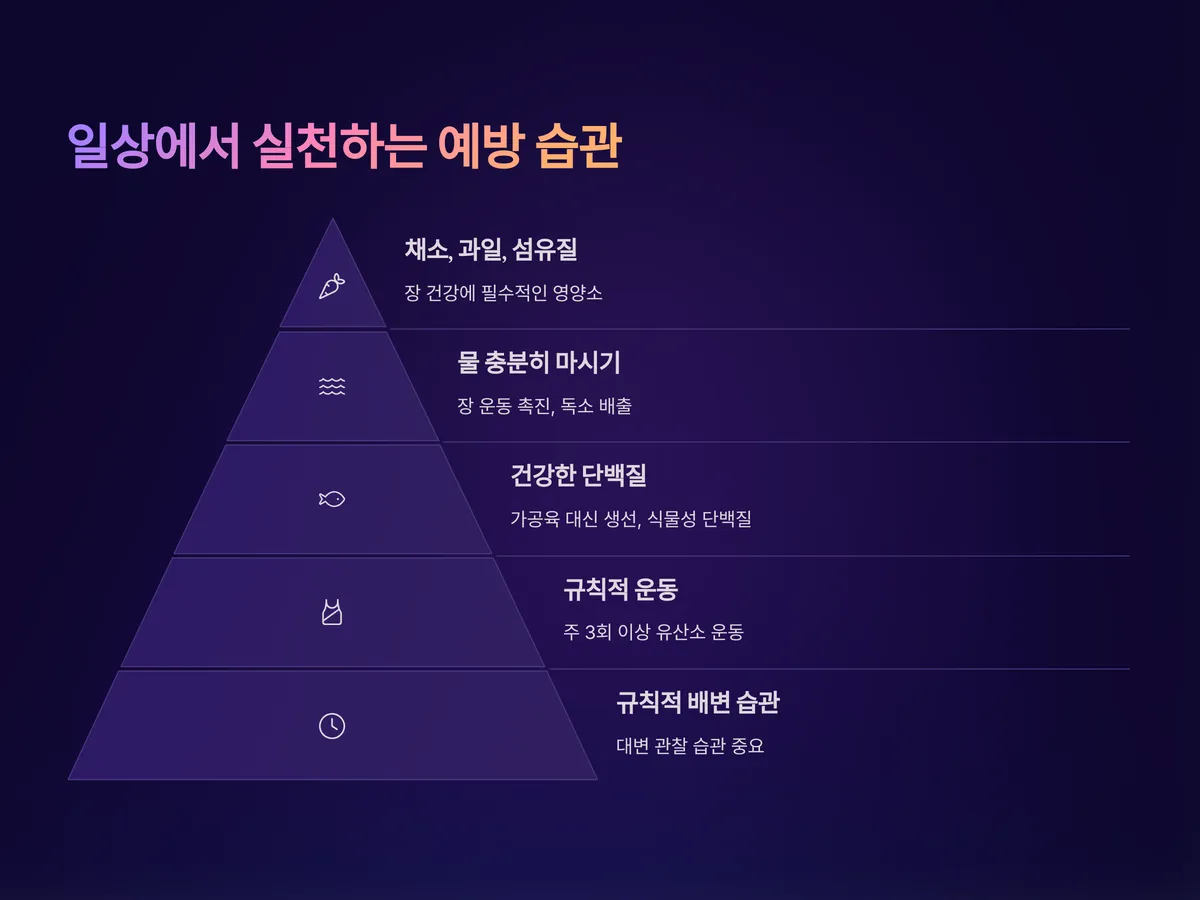 특히 규칙적인 배변 습관과 화장실에서의 대변 관찰 습관은 초기 증상 인지에 매우 중요합니다.