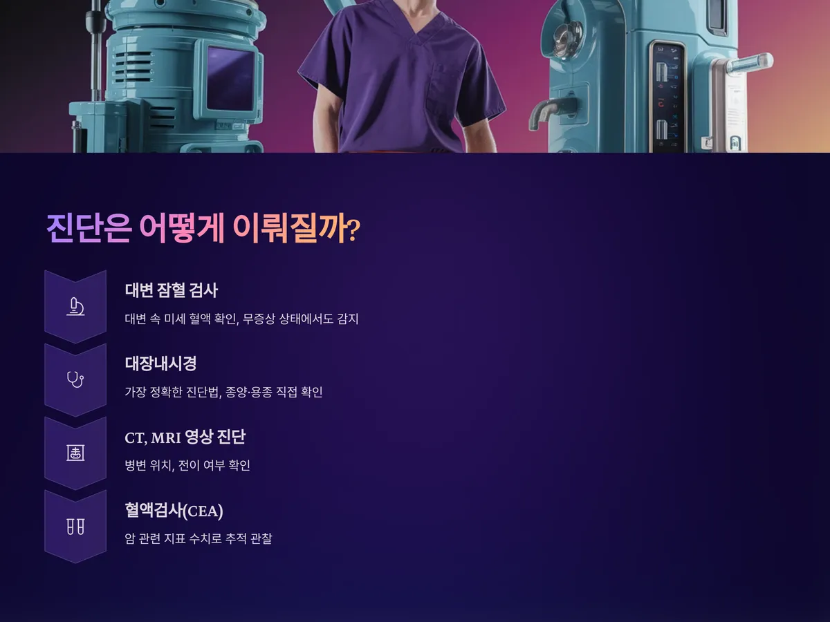 대장암을 진단하는 데 있어 가장 기본적인 방법은 대변 잠혈 검사입니다. 이는 대변 속에 미세한 혈액이 포함되어 있는지를 확인해, 무증상 상태에서도 병을 감지할 수 있습니다.