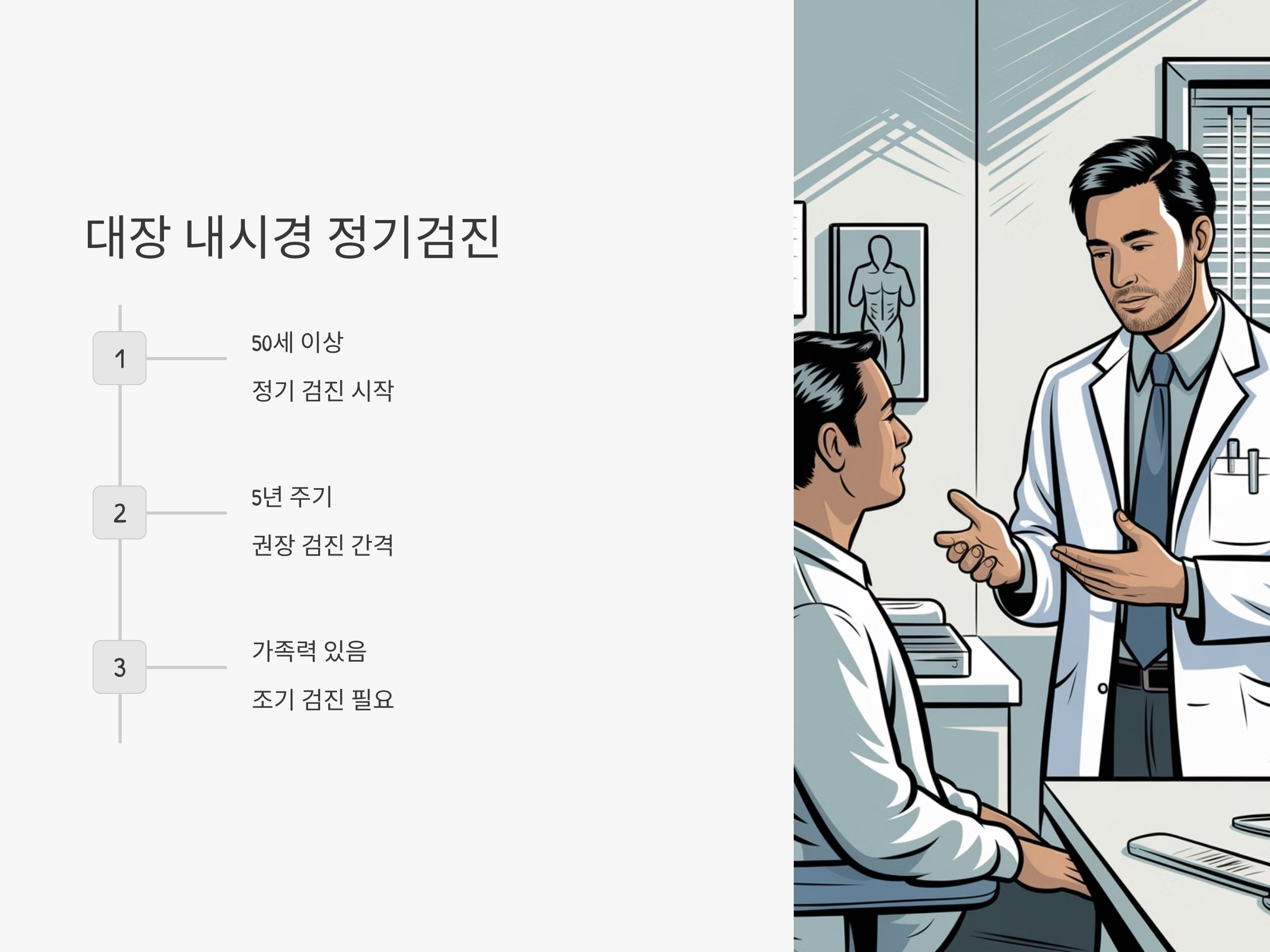 대장 내시경 검사는 50세 이상이라면 주기적으로 검사를 받는 것이 좋으며, 가족력이 있는 경우나 변비 증상이 있는 경우에도 검사가 필요합니다.