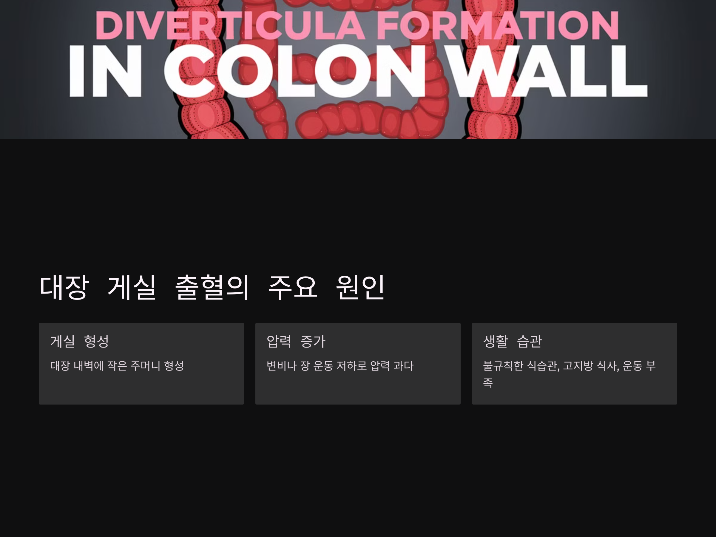 게실은 대장 내벽이 약해지고, 대장 벽에 압력이 과도하게 가해질 때 형성됩니다. 일반적으로 이러한 압력은 변비나 장이 제대로 움직이지 않을 때 발생합니다. 게실이 파열되면, 출혈이 발생할 수 있으며, 이로 인해 하복부에 통증을 유발할 수 있습니다. 그 외에도 불규칙한 식습관, 고지방 식사, 운동 부족 등이 대장 게실 출혈을 유발하는 주요 원인으로 꼽힙니다.
