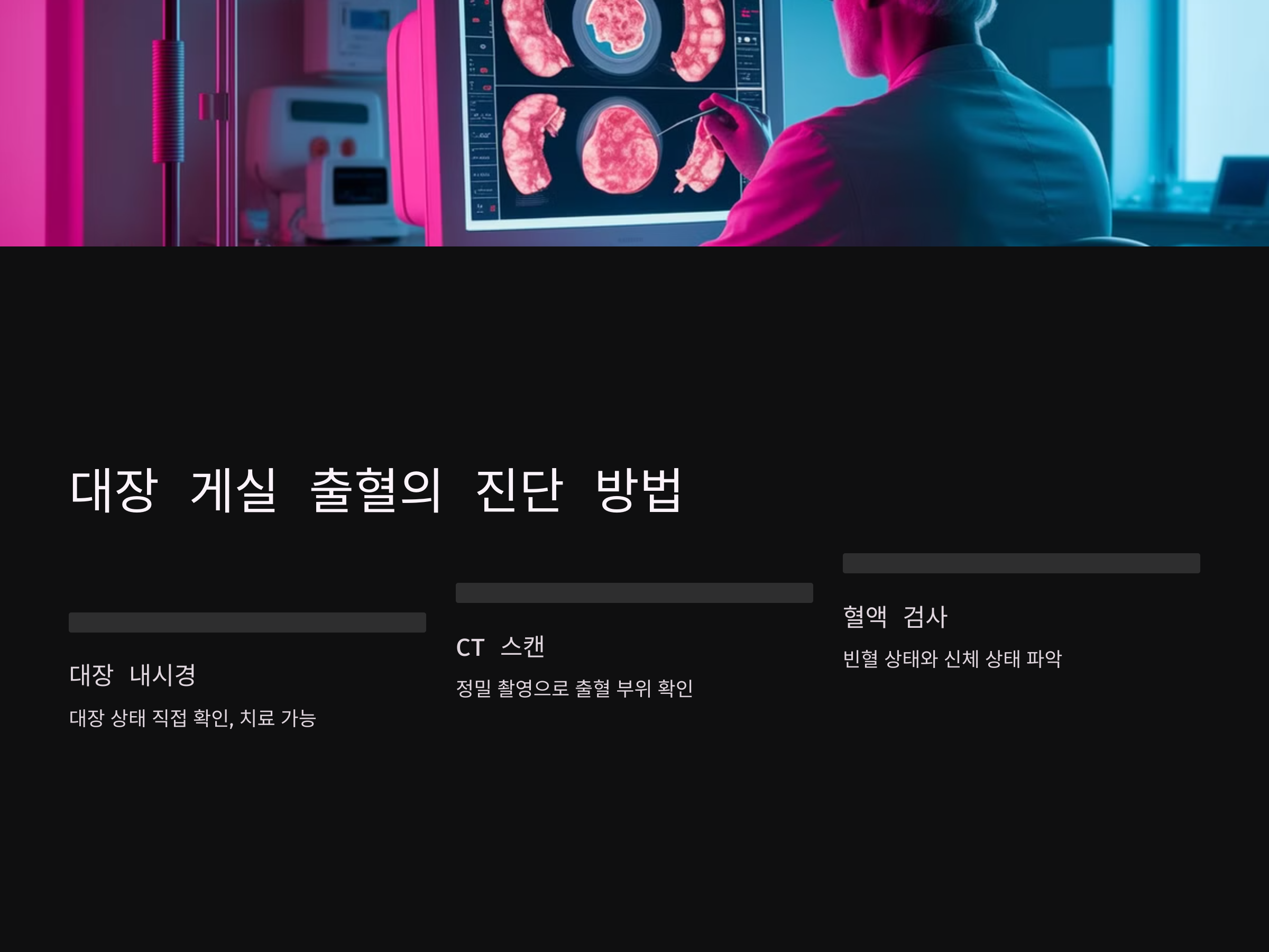 진단 후에는 출혈의 원인과 상태에 따라 적절한 치료 계획을 세울 수 있습니다. 대장 게실 출혈은 종종 자가 치유되기도 하지만, 경우에 따라 수술이 필요할 수 있으므로 전문의의 진료를 받는 것이 중요합니다.