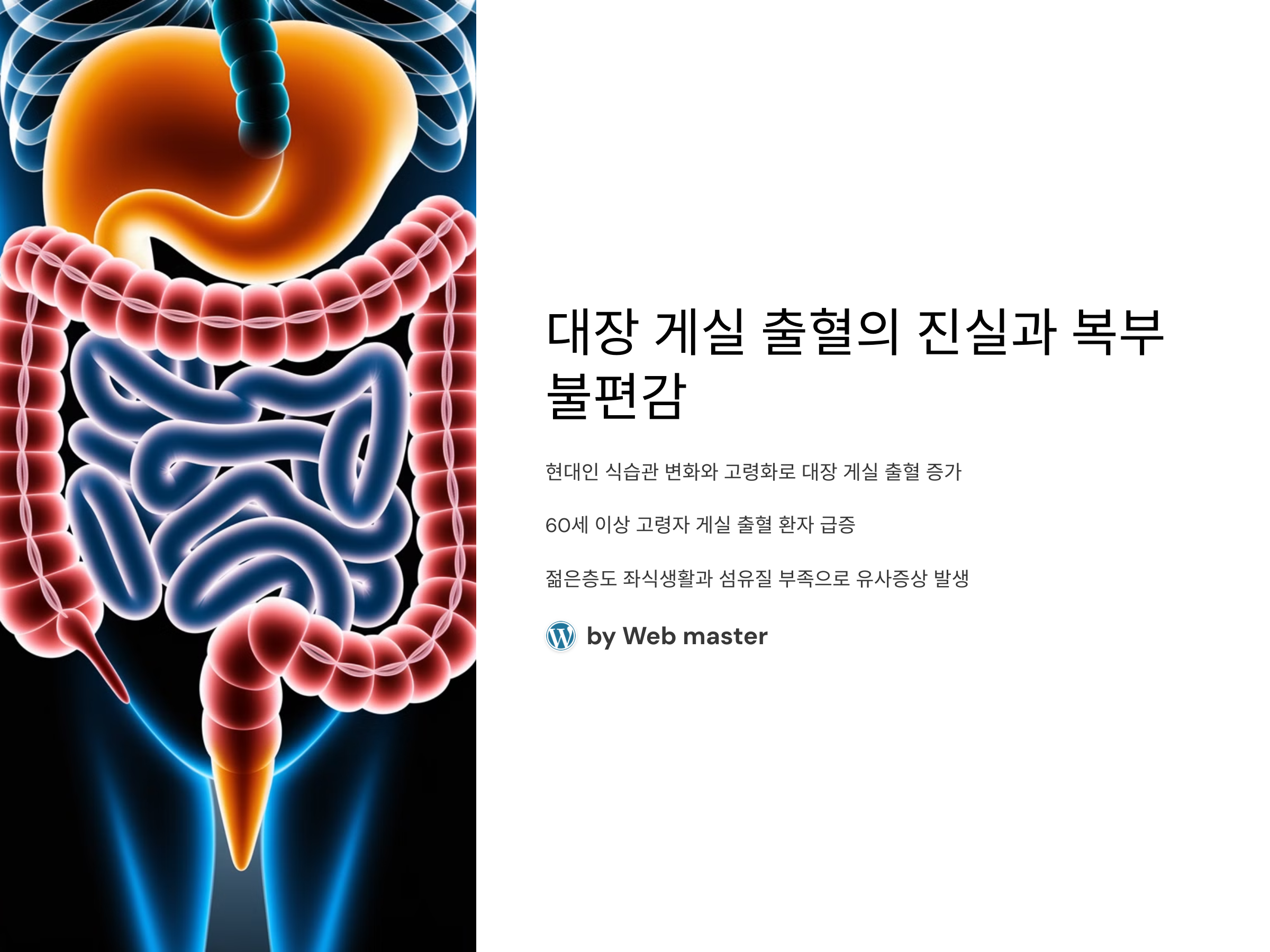 현대인의 식습관 변화와 고령화로 인해 ‘대장 게실 출혈’ 및 복부 불편감은 점점 더 빈번하게 나타나는 증상 중 하나입니다. 특히 최근 5년간 국내 장질환 통계에 따르면, 60세 이상 고령자에서 게실 출혈 환자가 급증하고 있으며, 젊은 층에서도 좌식 생활과 섬유질 부족으로 인한 유사 증상이 포착되고 있습니다. 문제는 이러한 증상이 대부분 일상적인 복통이나 가스참으로 오해되며 방치된다는 점입니다. 대장 내 게실은 대부분 무증상이나, 출혈이 발생했을 때 갑작스럽고 심각한 증상으로 이어지기 때문에 초기 발견과 식이 조절, 생활 습관 개선이 매우 중요합니다. 특히 최근 대장 내시경 기술의 발전으로 조기 발견율이 높아졌으며, 비침습적 치료도 가능해진 만큼 미리 알고 대처하는 것이 건강한 삶의 열쇠가 됩니다.