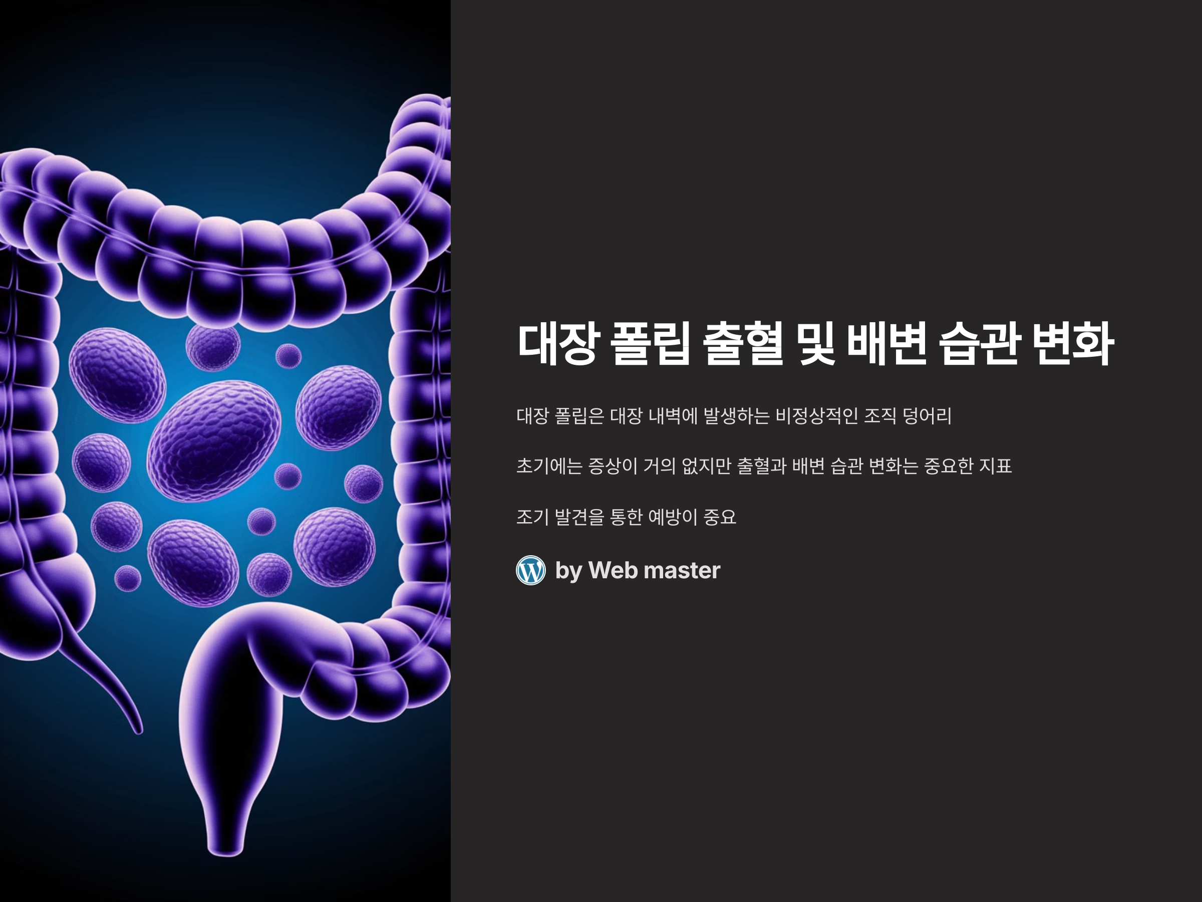 대장 폴립은 대장 내벽에 발생하는 비정상적인 조직 덩어리로, 초기에는 증상이 거의 나타나지 않지만, 이로 인해 발생할 수 있는 출혈과 배변 습관의 변화는 신경 써야 할 중요한 지표입니다. 대장 폴립이 발생했을 때, 그로 인한 증상은 여러 가지가 있을 수 있으며, 특히 출혈과 배변 습관의 변화는 초기에 이를 인지하기 어려울 수 있습니다. 이 글에서는 대장 폴립의 출혈 증상과 배변 습관의 변화, 그리고 이를 관리하고 예방하기 위한 방법들에 대해 알아보겠습니다.