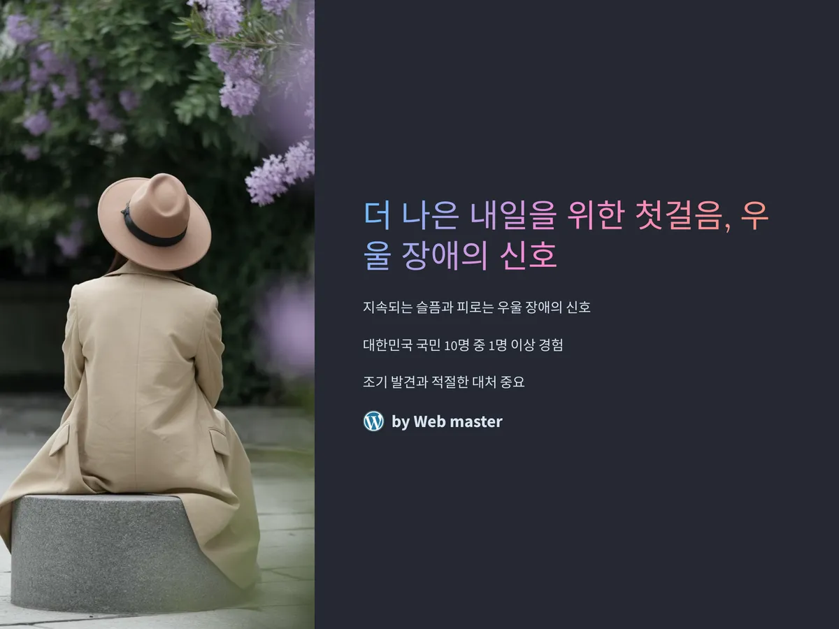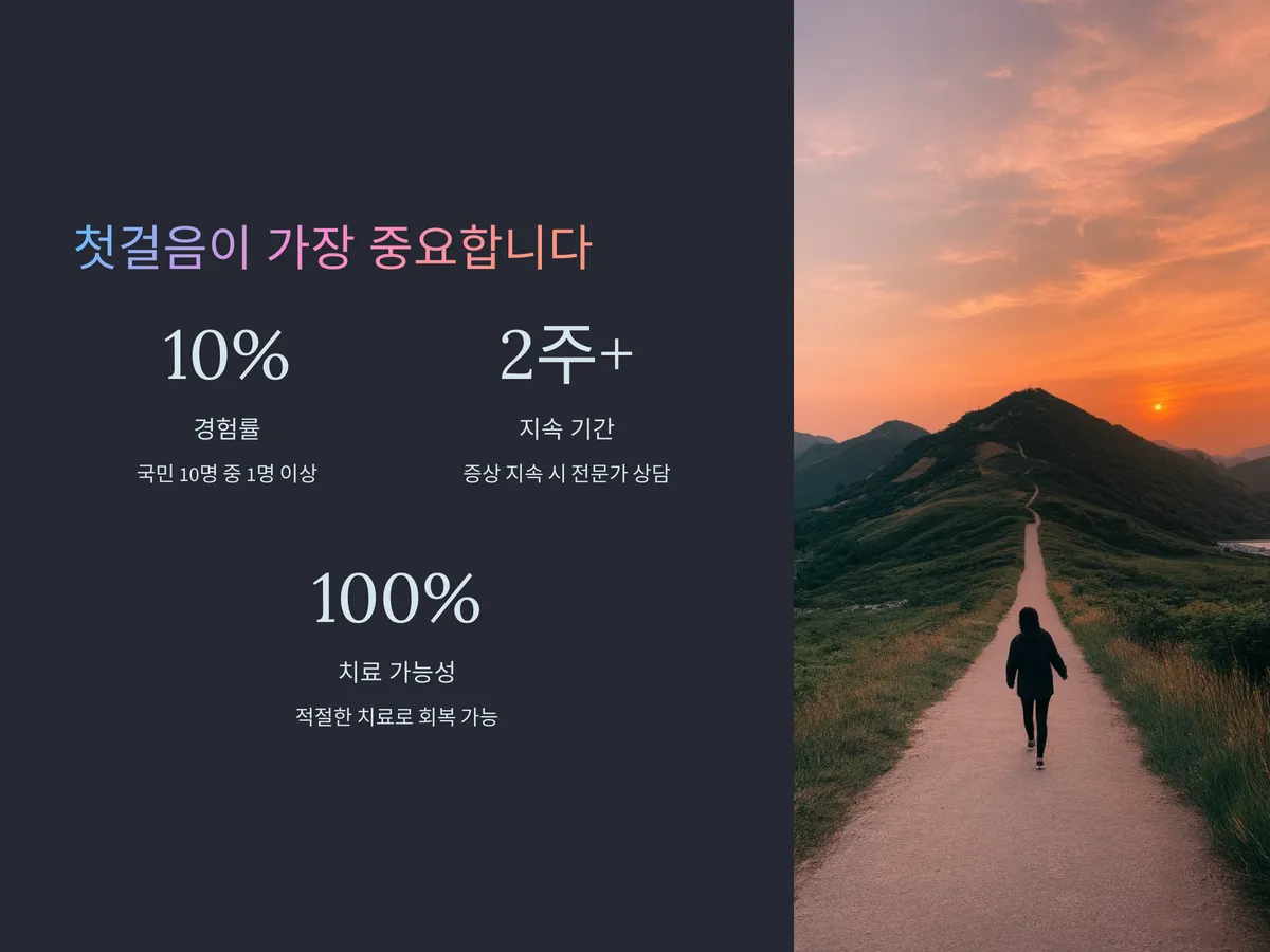 우울 장애는 누구에게나 찾아올 수 있는 보편적인 질환입니다. 지속되는 슬픔과 피로에 대해 ‘괜찮아질 거야’라는 말로 넘기기보다는, 스스로의 상태를 정확히 인지하고 도움을 요청하는 용기가 필요합니다. 친구, 가족, 전문가, 온라인 상담센터 등 다양한 채널이 여러분을 기다리고 있습니다.