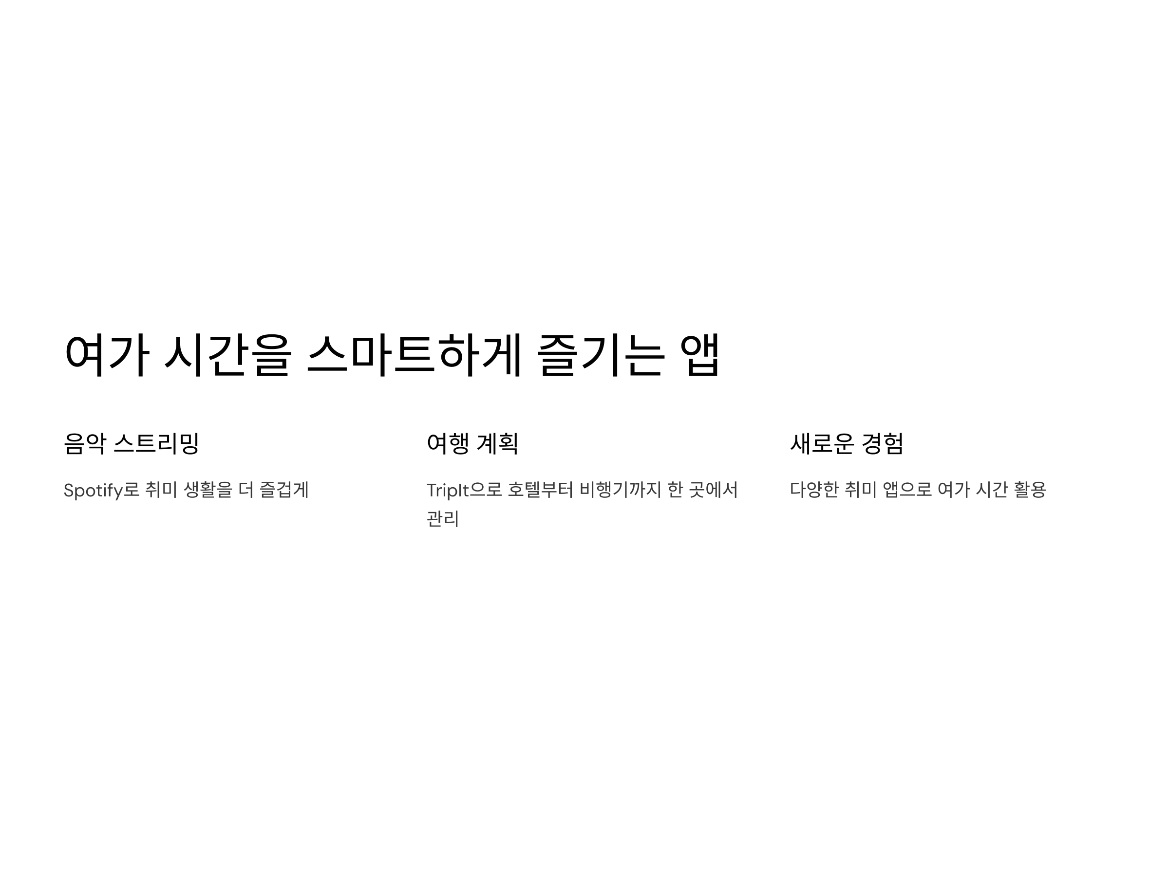 여러분이 좋아하는 취미 활동에 맞는 앱을 활용하면, 여가 시간을 보다 스마트하게 보낼 수 있습니다. 음악을 듣고, 여행 계획을 세우고, 새로운 활동을 발견하는 등의 다양한 경험을 스마트폰을 통해 즐길 수 있습니다.