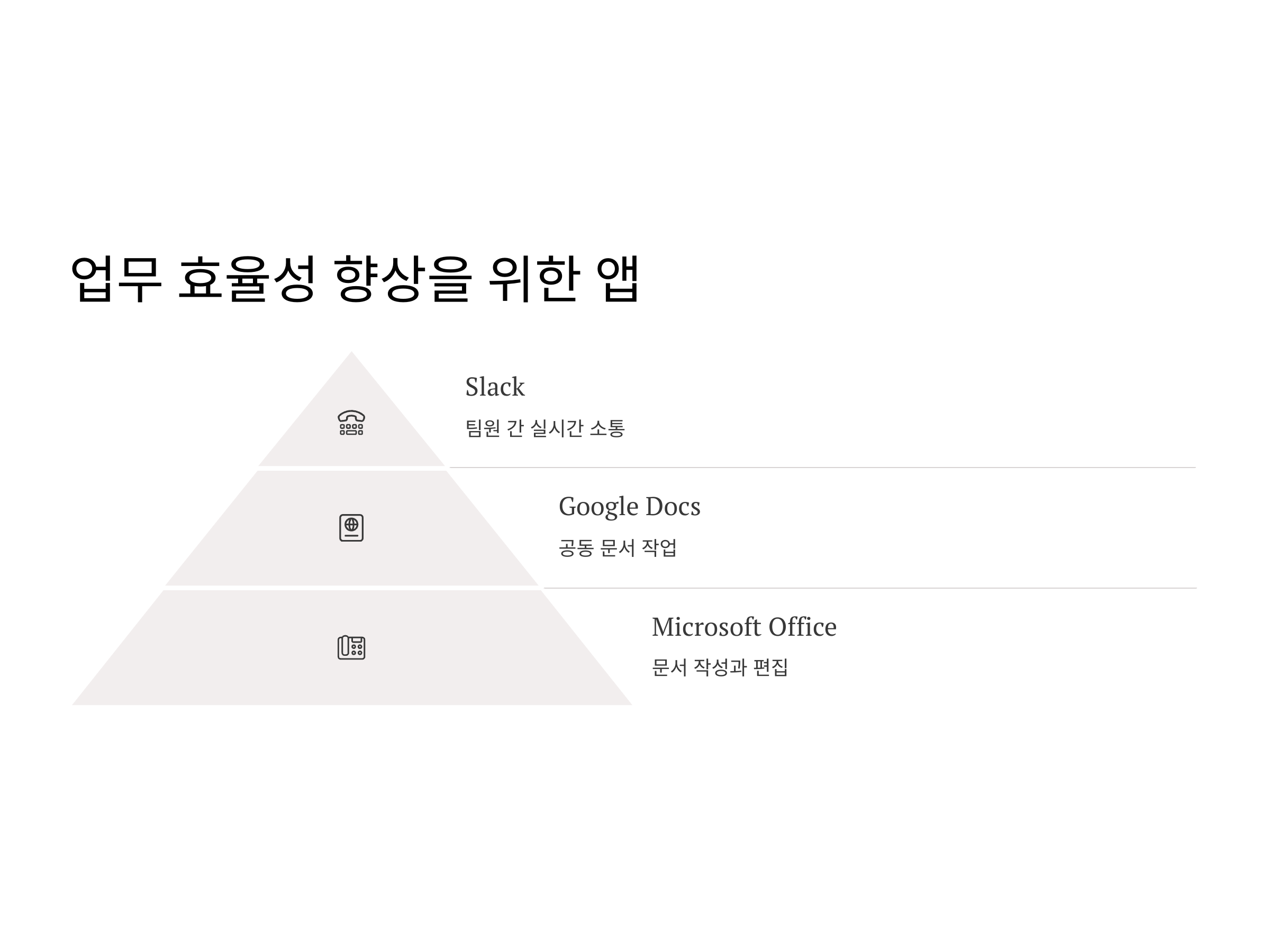 특히 Slack은 업무 커뮤니케이션을 원활하게 해주는 앱으로, 팀원 간에 빠르고 효율적인 소통을 가능하게 합니다. Google Docs는 공동 작업을 지원하며, 여러 사람이 동시에 문서를 작성하고 편집할 수 있어 매우 유용합니다.