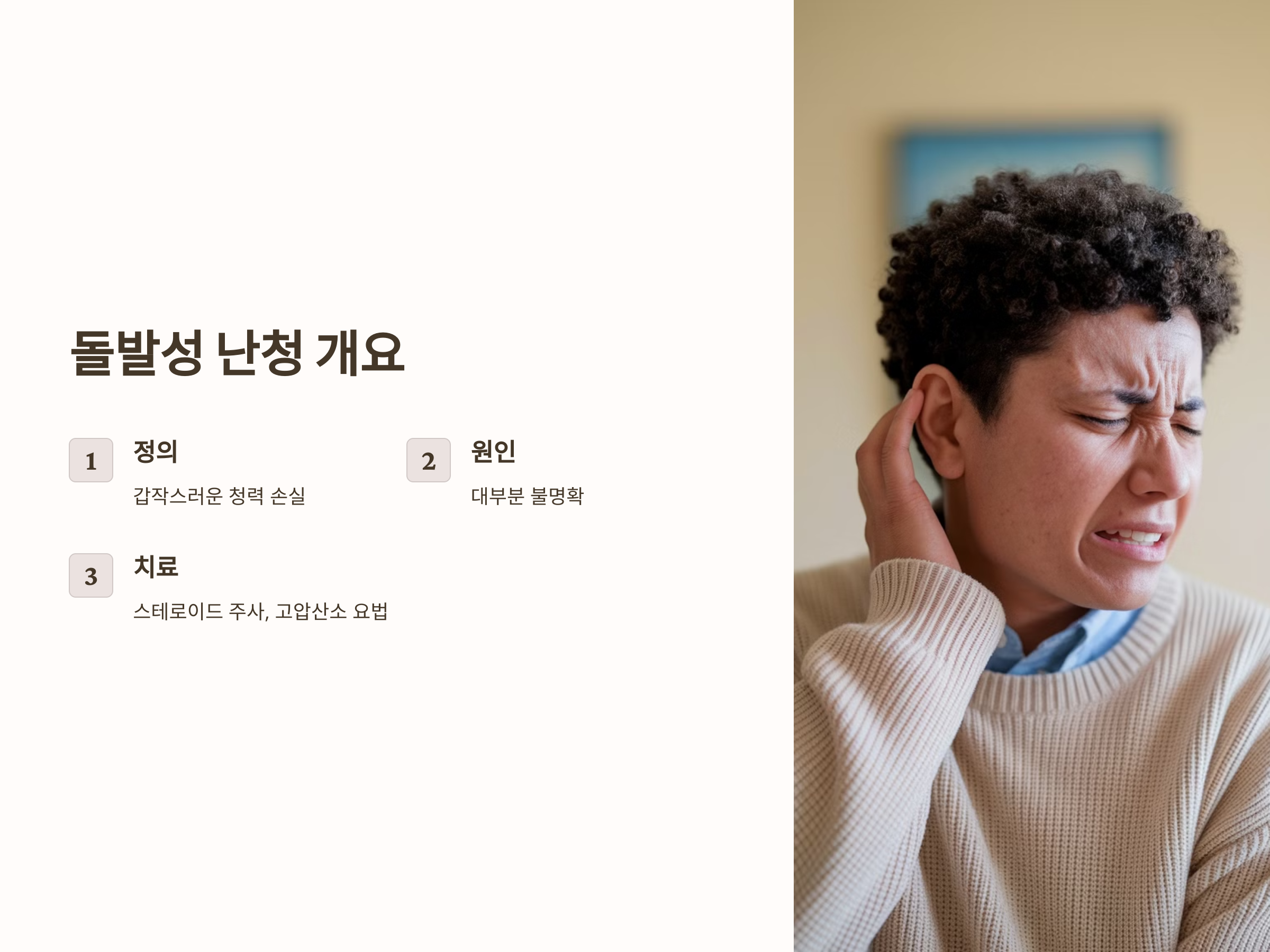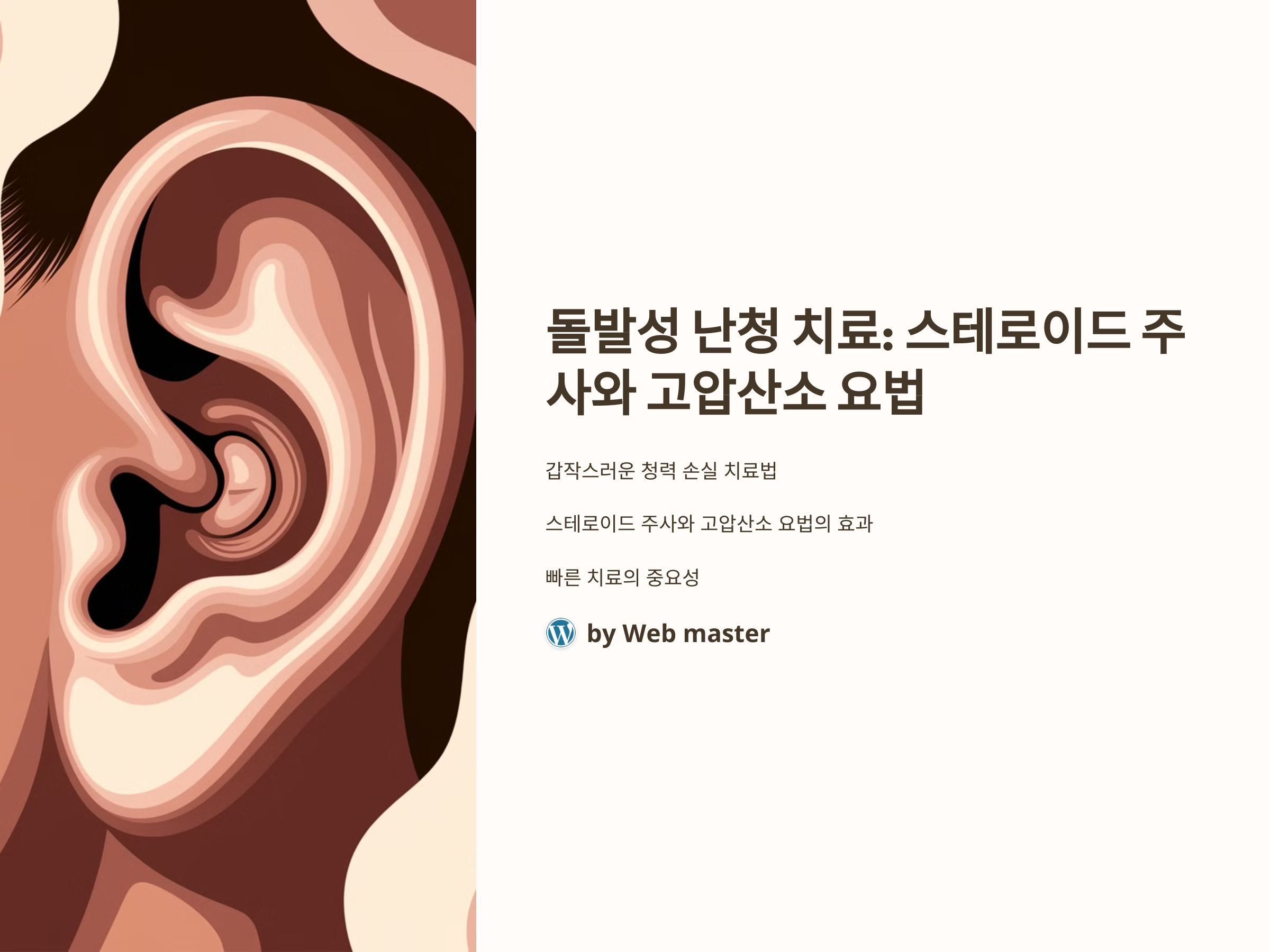 돌발성 난청은 갑작스러운 청력 손실이 특징인 질환으로, 정확한 원인이 밝혀지지 않은 경우가 많습니다. 이로 인해 치료가 어려운 경우가 많지만, 최근에는 스테로이드 주사와 고압산소 요법이 효과적인 치료법으로 알려지며 많은 사람들에게 희망을 주고 있습니다. 오늘은 이 두 가지 치료법에 대해 알아보고, 그 효과와 치료 과정에 대해 설명하겠습니다.