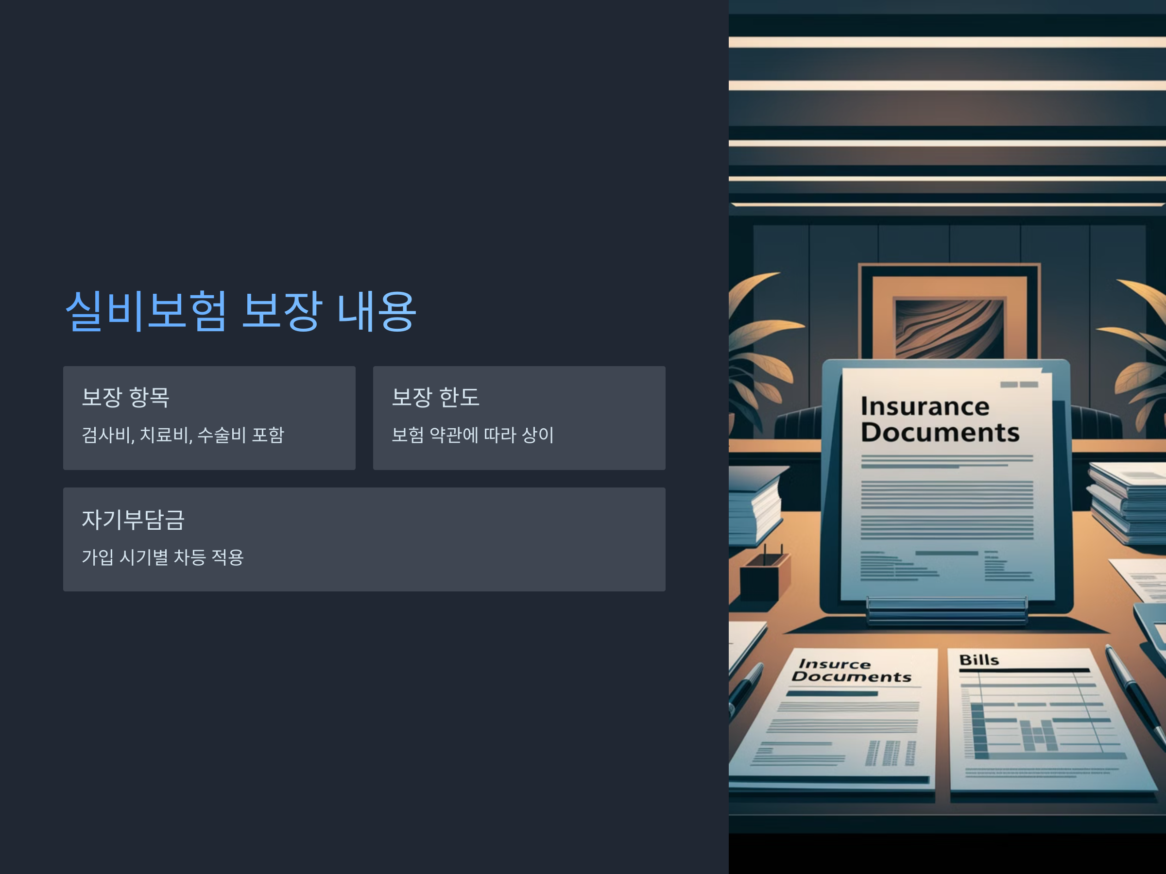 - 보험사마다 보장 항목과 한도가 다를 수 있으므로, 가입한 보험의 약관을 확인하는 것이 중요합니다.
