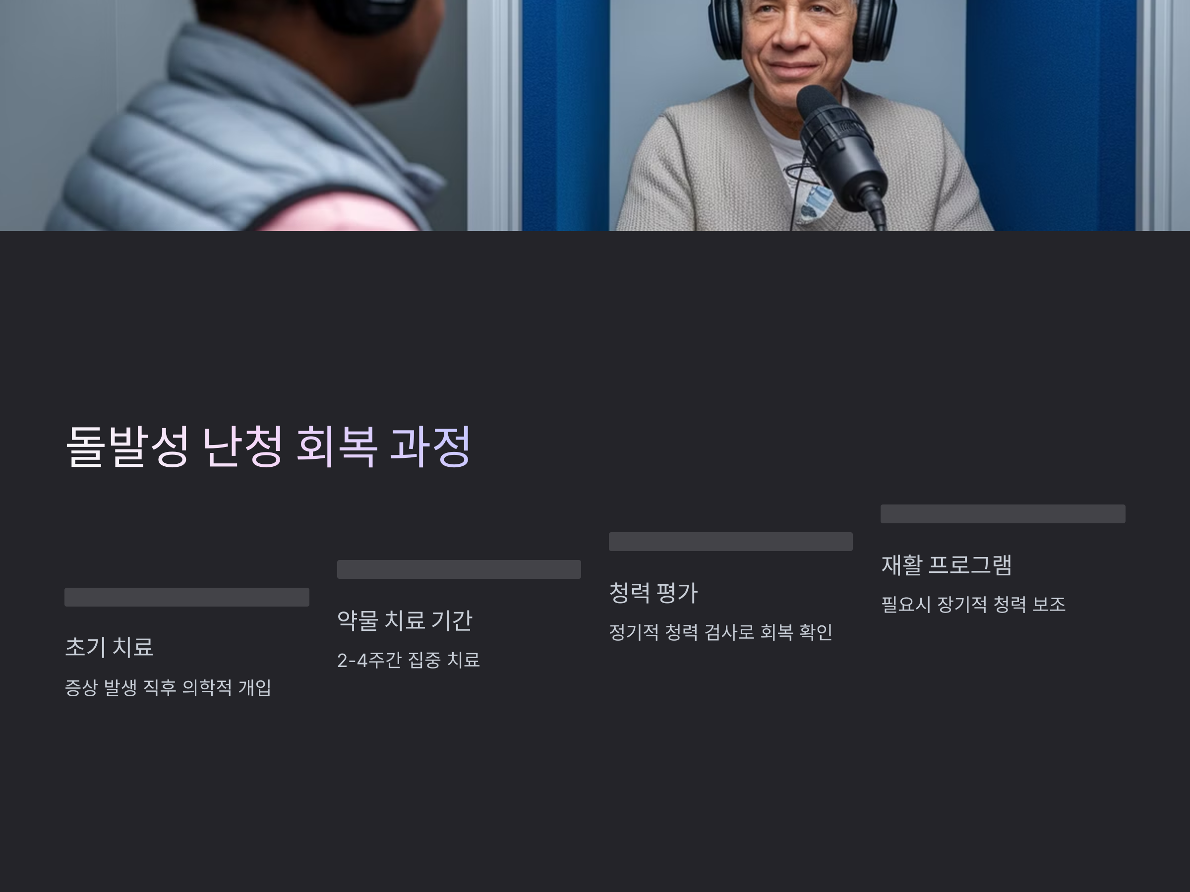 청력이 완전히 회복되지 않는 경우, 재활 치료가 필요할 수 있습니다. 보청기나 인공와우와 같은 장치들을 사용하여 청력을 보조할 수 있습니다. 또한, 이명 증상이 심한 경우 이명 훈련법을 통해 증상을 완화할 수 있는 방법도 있습니다.