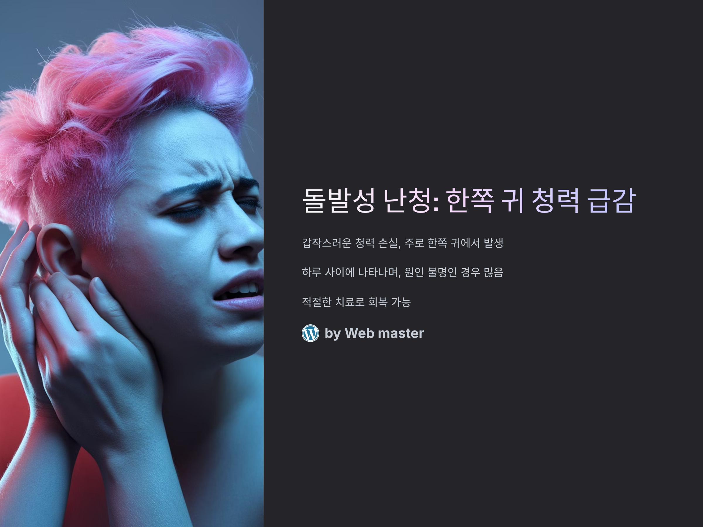 돌발성 난청은 흔히 갑작스럽게 발생하는 청력 손실을 의미합니다. 특히 한쪽 귀에서 청력이 급격히 감소하는 증상을 보일 때 이를 '돌발성 난청'이라고 부릅니다. 이 질환은 주로 하루 사이에 발생하며, 종종 이유를 알 수 없는 상태에서 나타납니다. 이로 인해 많은 사람들이 당황하거나 불안해하지만, 다행히도 적절한 치료를 받으면 회복이 가능할 수도 있습니다.