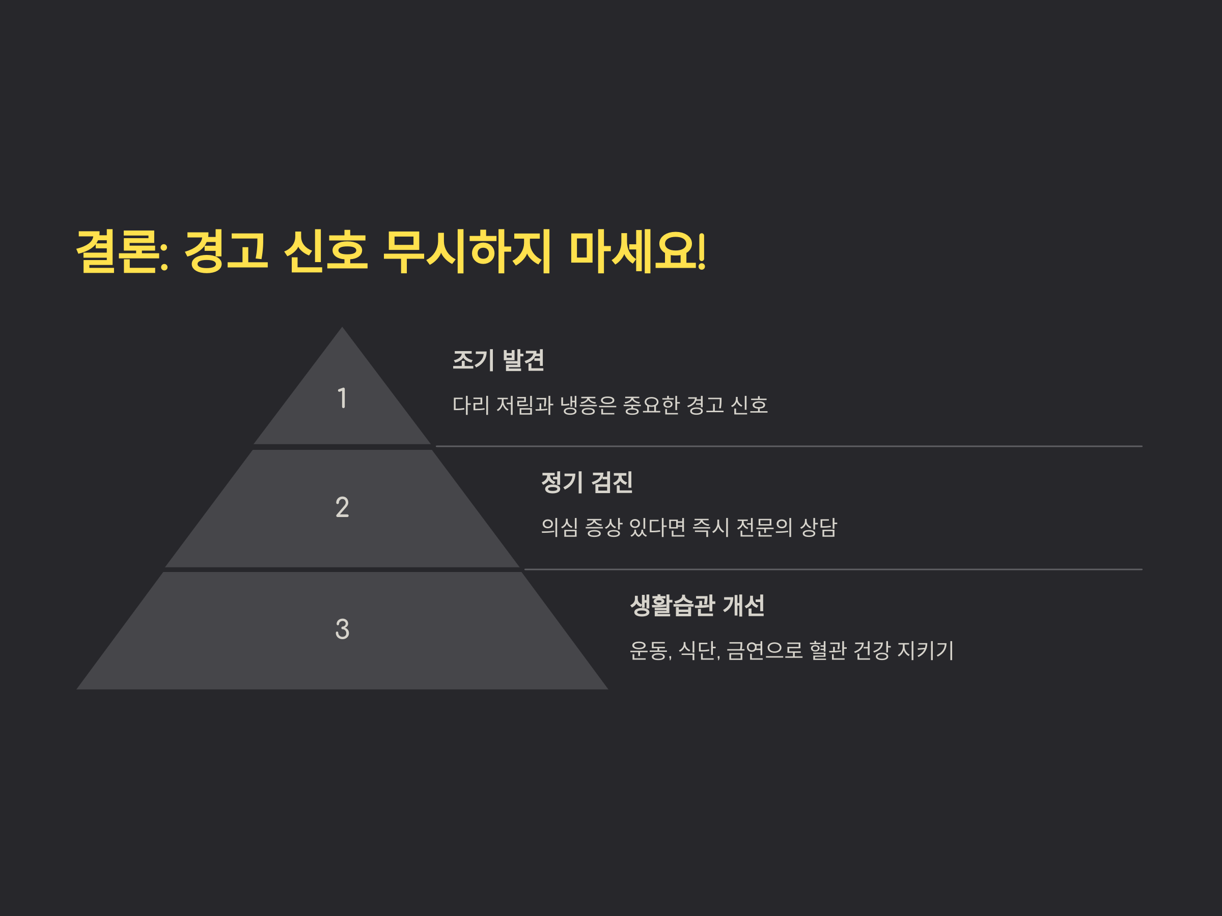 결론: 다리 저림과 냉증이 동맥경화증 신호라면, 지체하지 말고 치료 시작!