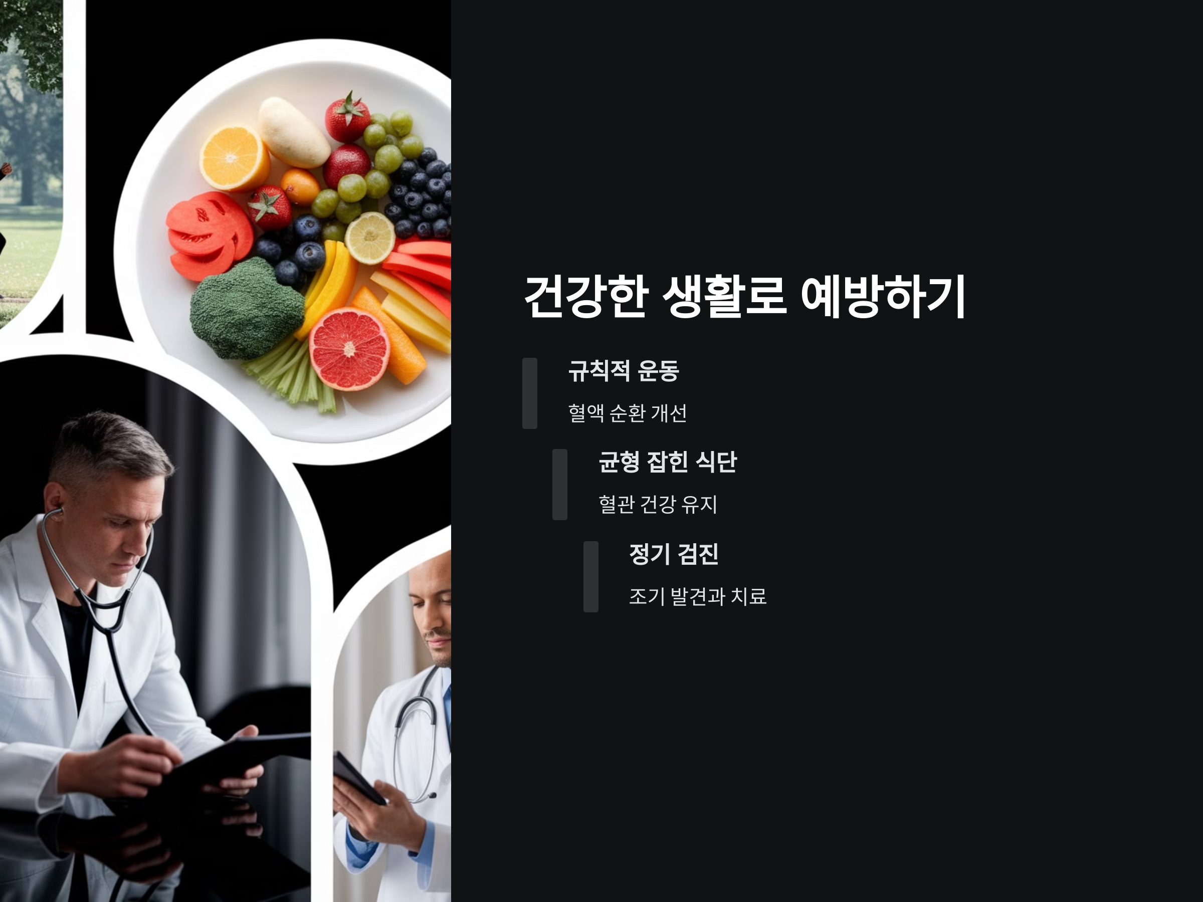 - 규칙적인 운동: 유산소 운동을 통해 혈액 순환을 촉진하고, 혈관 건강을 유지할 수 있습니다.