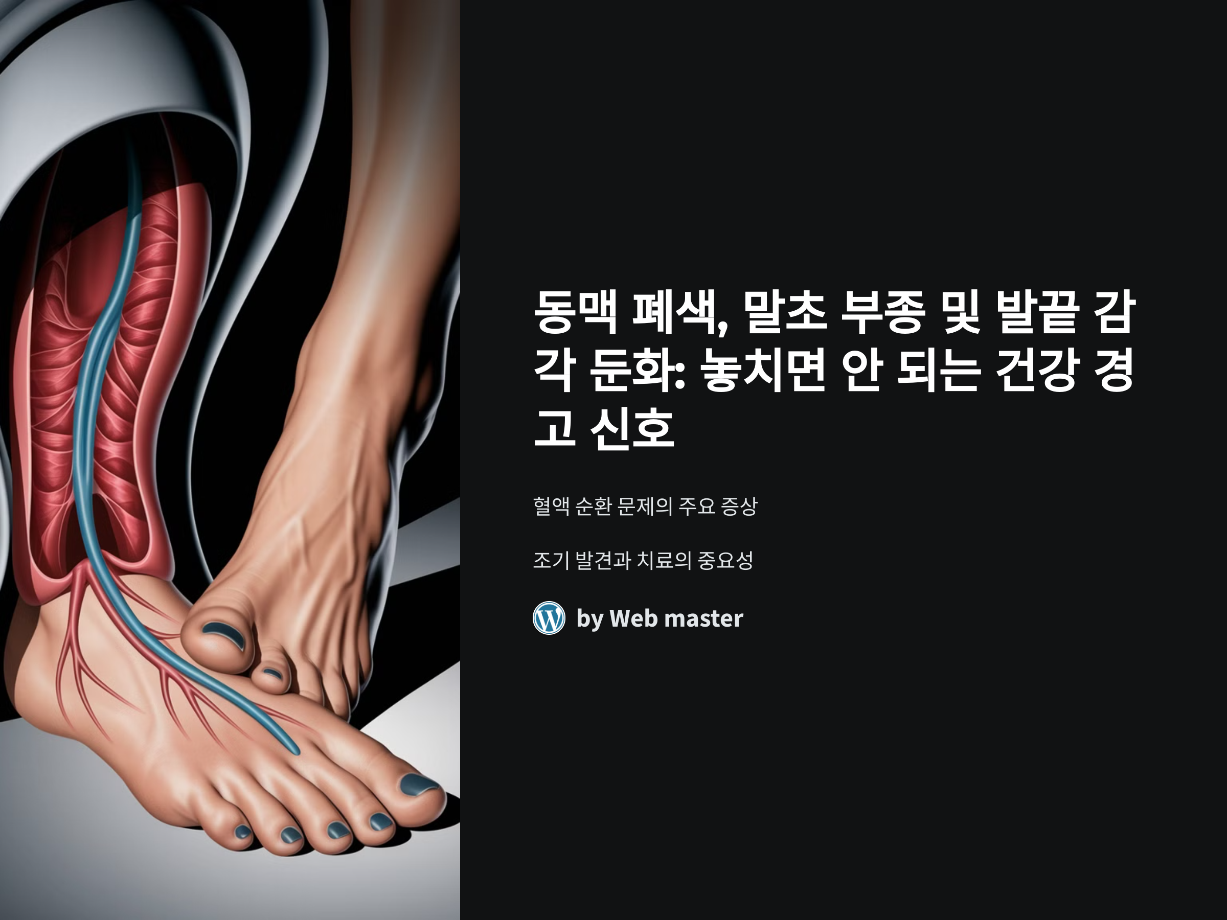 동맥 폐색, 말초 부종, 발끝 감각 둔화는 단순한 불편함을 넘어 심각한 건강 문제를 나타낼 수 있습니다. 특히, 이 세 가지 증상은 모두 혈액 순환에 중요한 문제를 시사하며, 이를 무시하면 장기적인 건강 악화를 초래할 수 있습니다. 이 글에서는 동맥 폐색의 원인과 증상, 말초 부종의 위험성, 발끝 감각 둔화의 관련 질환을 깊이 있게 다루며, 예방과 치료 방법에 대해 설명합니다.