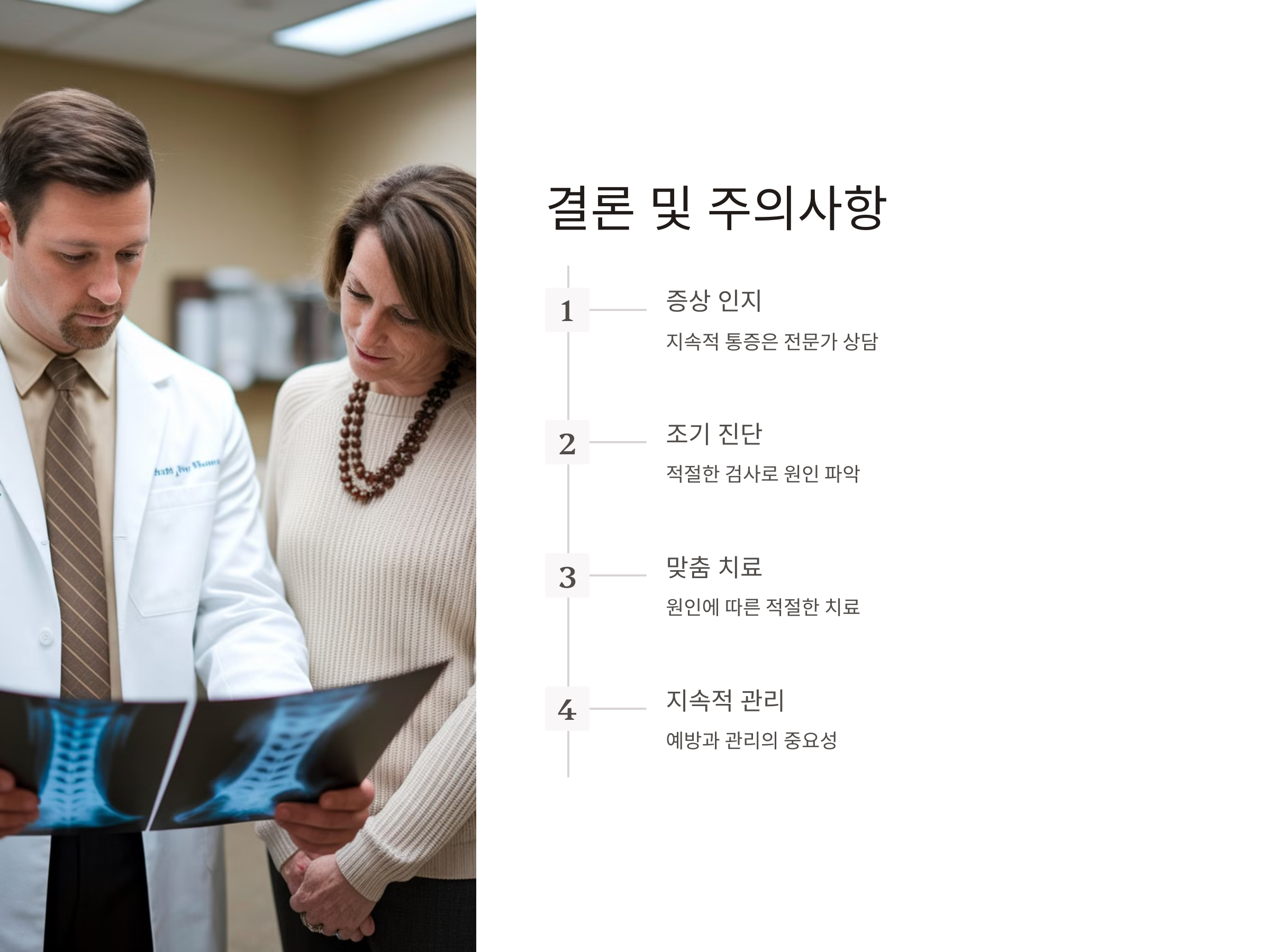 따라서, 증상이 지속적으로 나타나거나 일상적인 활동 중에도 통증이 심해진다면 골다공증을 의심해 볼 수 있으며, 골밀도 검사를 통해 진단을 받는 것이 중요합니다.