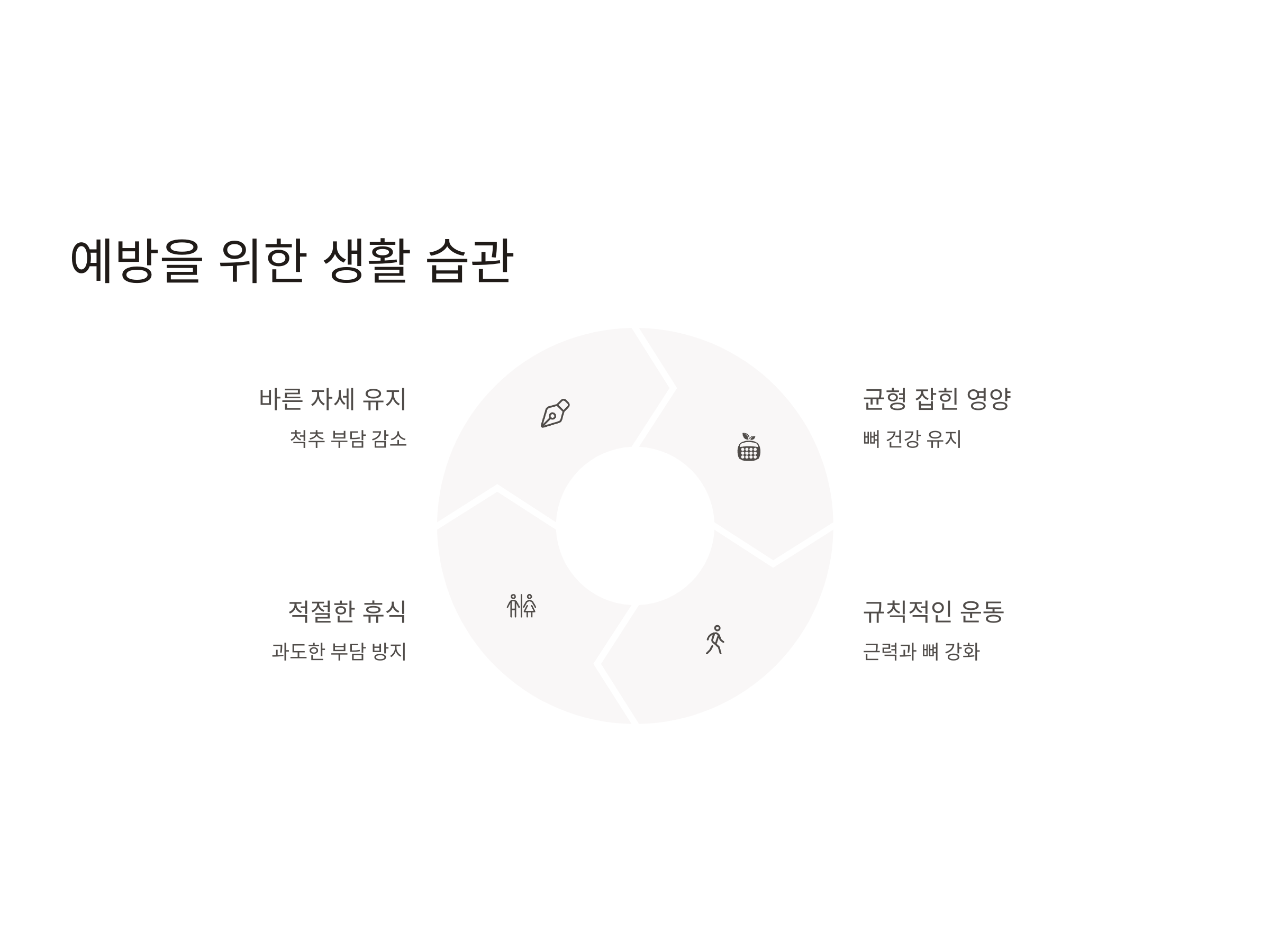 골다공증의 경우, 예방이 가장 중요합니다. 칼슘과 비타민 D가 풍부한 식사를 하고, 체중 부하 운동을 통해 뼈의 밀도를 높이는 것이 필요합니다. 이미 골다공증이 진행된 경우, 약물 치료를 통해 뼈의 밀도를 유지하고, 골절을 예방하는 것이 중요합니다. 이를 위해 전문가의 진단과 처방을 받는 것이 필수적입니다.