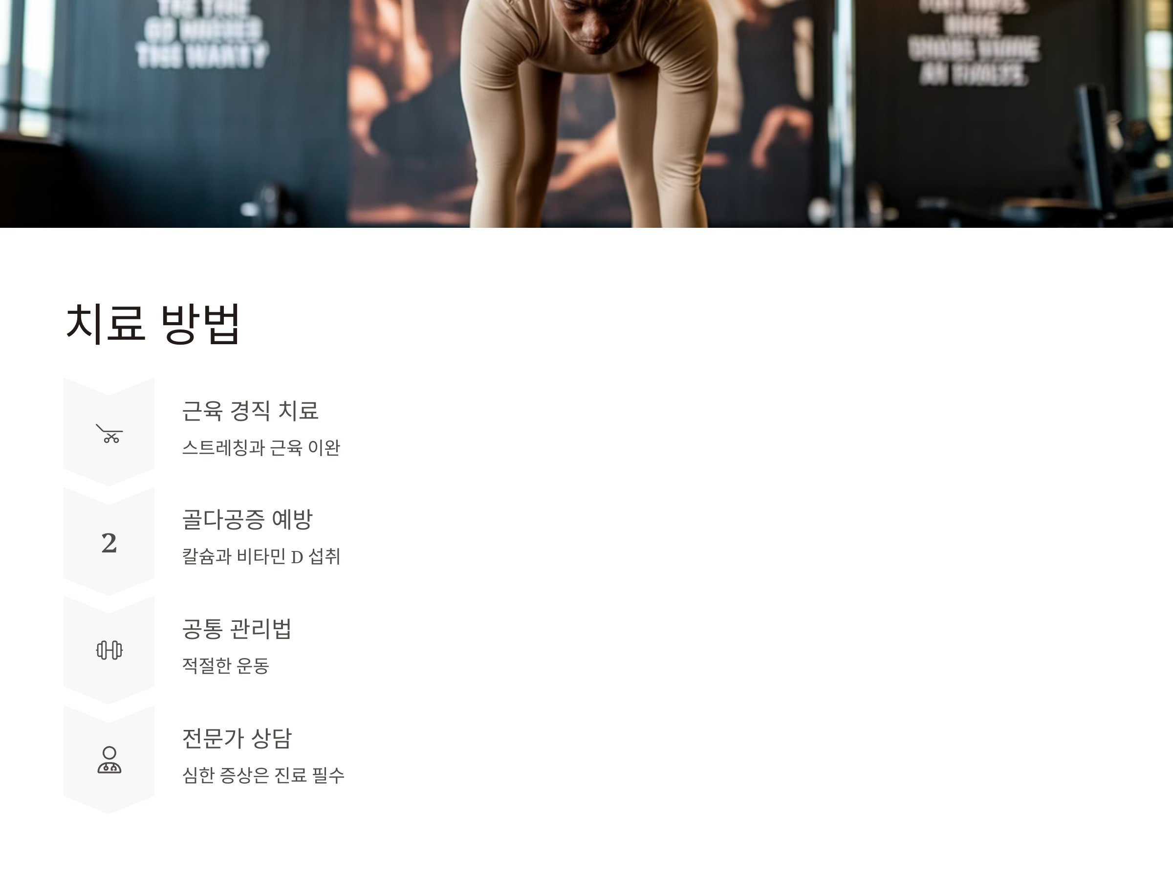 척추 근육 경직의 경우 일상적인 자세나 생활 습관에서 비롯되는 경우가 많고, 비교적 간단한 방법으로 치료가 가능합니다. 그러나 골다공증은 증상이 진행되기 전에 조기에 발견하여 관리하는 것이 중요하며, 이는 전문적인 치료와 예방이 필요한 질환입니다.