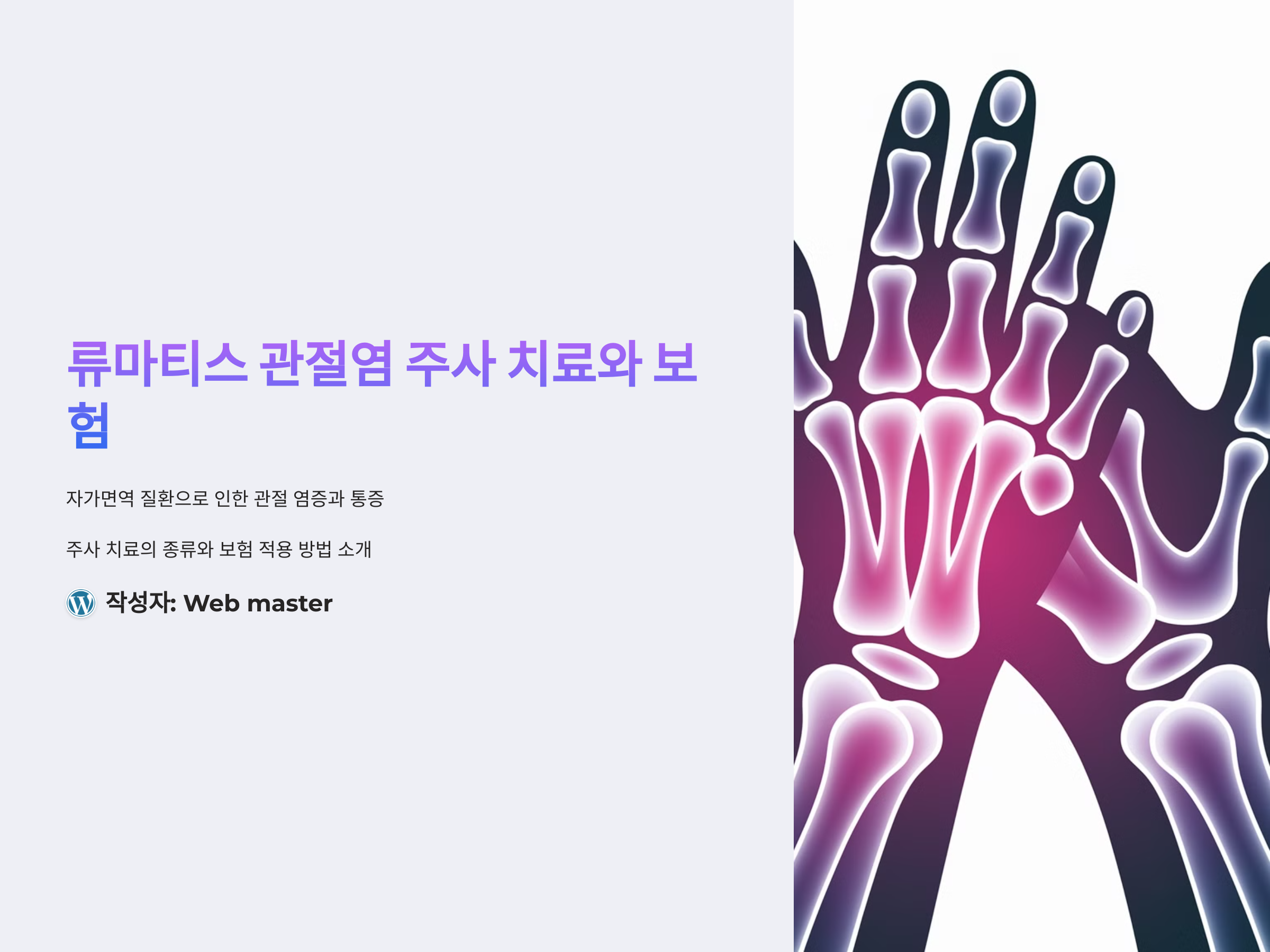 류마티스 관절염은 자가면역 질환으로, 관절에 염증을 일으켜 지속적인 통증을 유발하고 관절을 손상시킵니다. 이 질환은 신체 기능에 큰 영향을 미치며, 치료가 지연되거나 적절하지 않으면 관절 변형이나 기능 장애로 이어질 수 있습니다. 류마티스 관절염을 치료하는 방법 중 하나는 주사 치료입니다. 그러나 치료비가 상당히 부담스러울 수 있기 때문에, 건강보험 적용 여부와 실손보험을 통한 재활 치료비 청구 방법에 대해 알고 있는 것이 중요합니다.