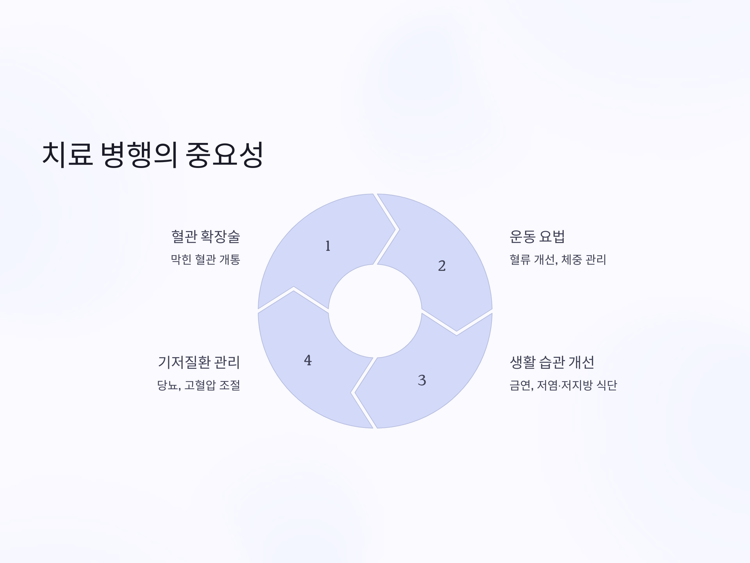 - 운동 요법을 통해 혈류 개선 및 체중 관리